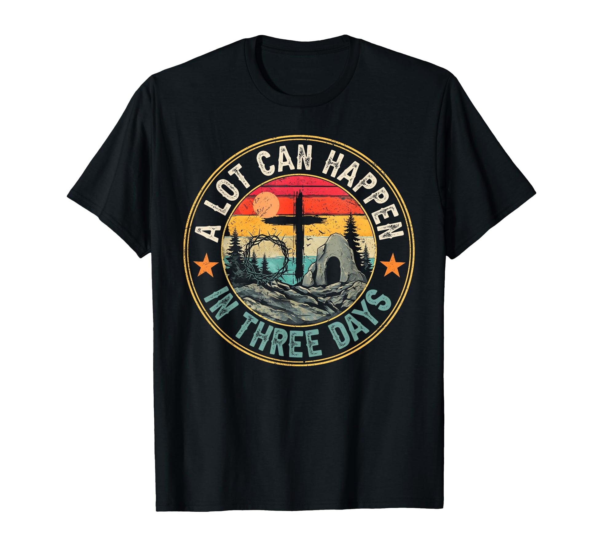 A Lot Can Happen In 3 Days Retro Vintage Sunset Happy Easter T-Shirt