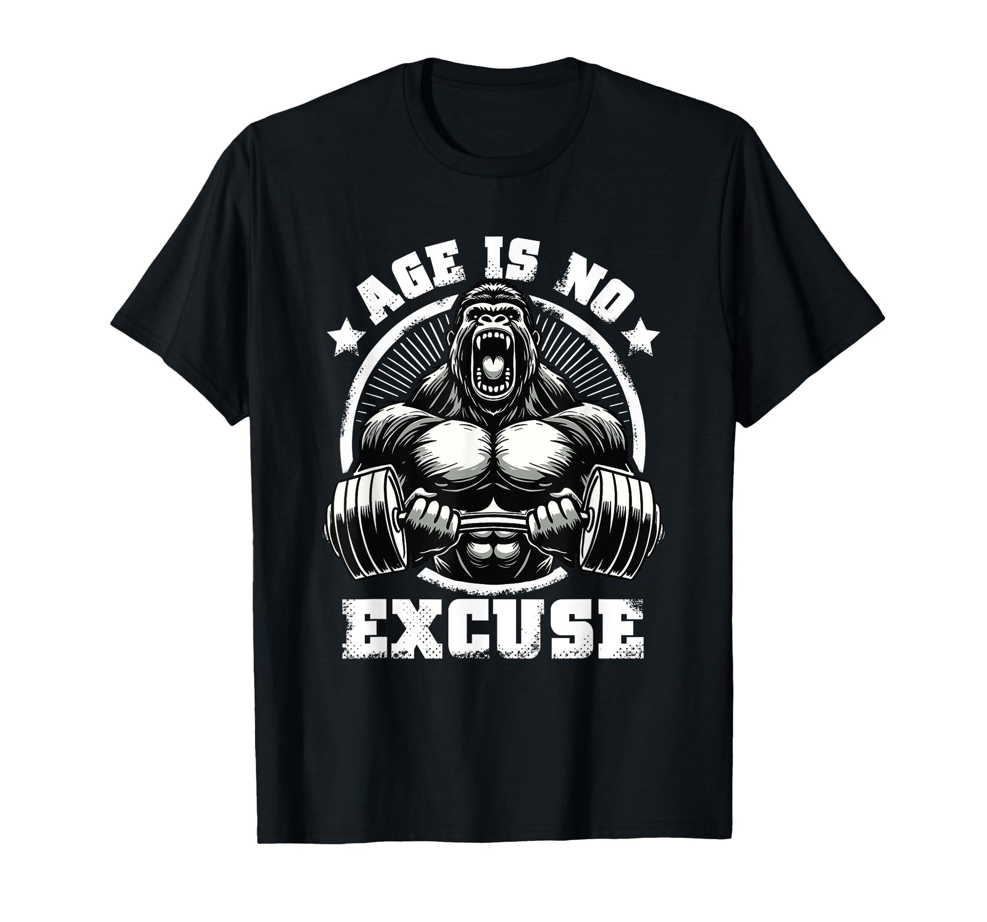 Age Is No Excuse Gorilla Weightlift Gym Quotes Gym Fitness T-Shirt