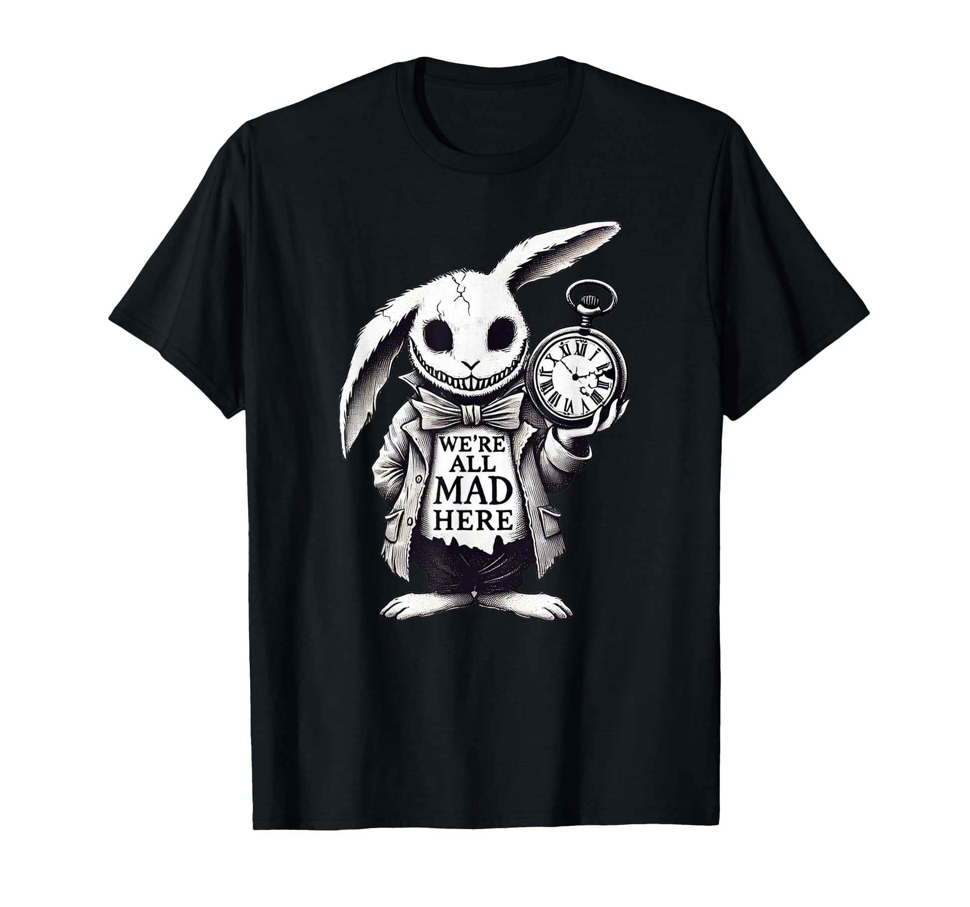 Alice in Wonderland - We're All Mad Here Rabbit Hatter Quote T-Shirt