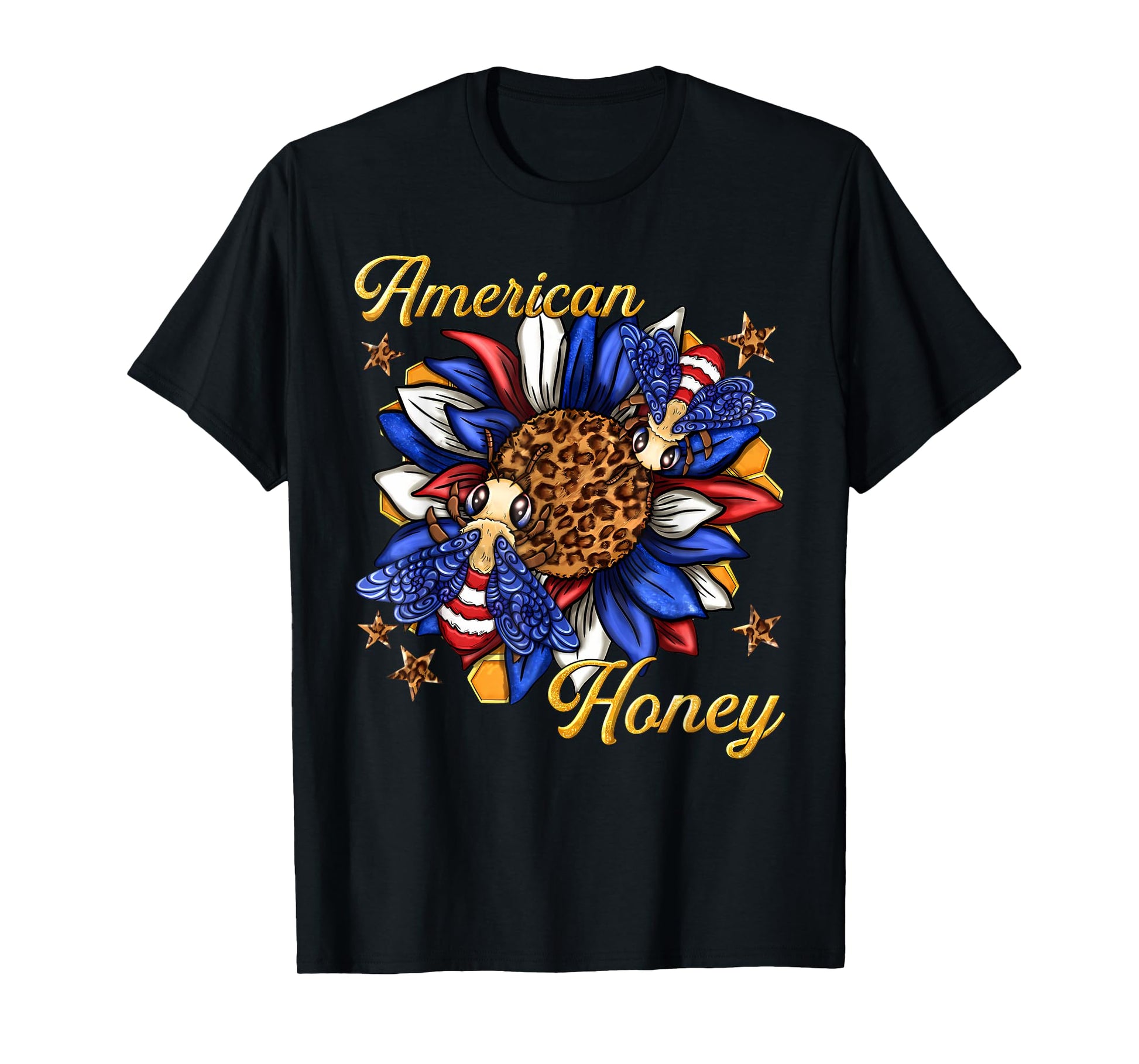 American Honey Bee Sunflower Leopard US Flag 4th Of July T-Shirt