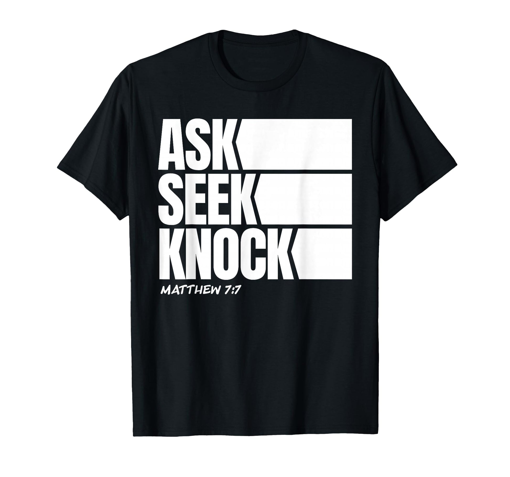 Ask Seek Knock Matthew 7:7 Christian Faith Bible Verse T-Shirt
