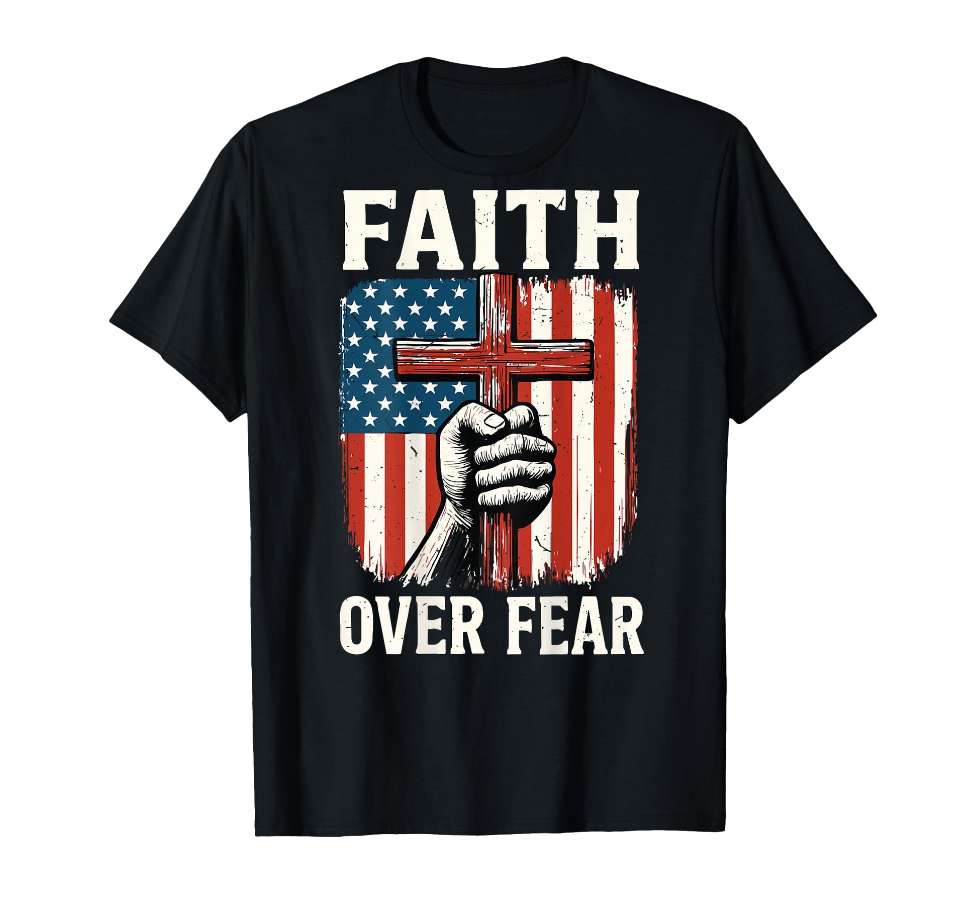 Back American Flag Faith Over Fear Christian Patriotic Cross T-Shirt