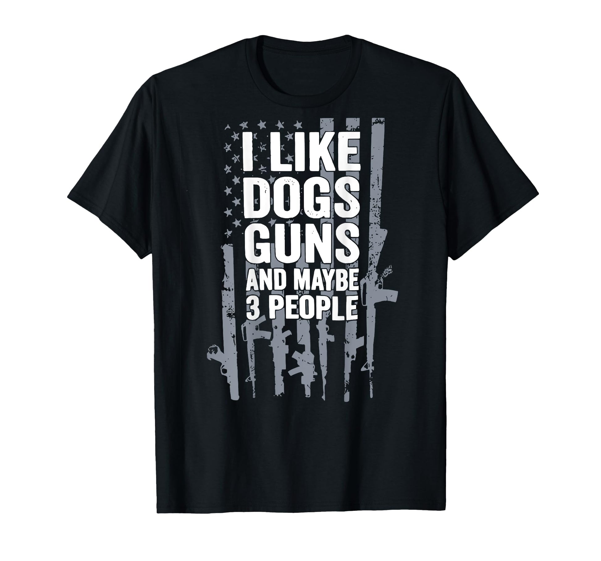 BACK I Like Dogs Gunss And Maybe 3 People Flag Funny Dog Pet T-Shirt