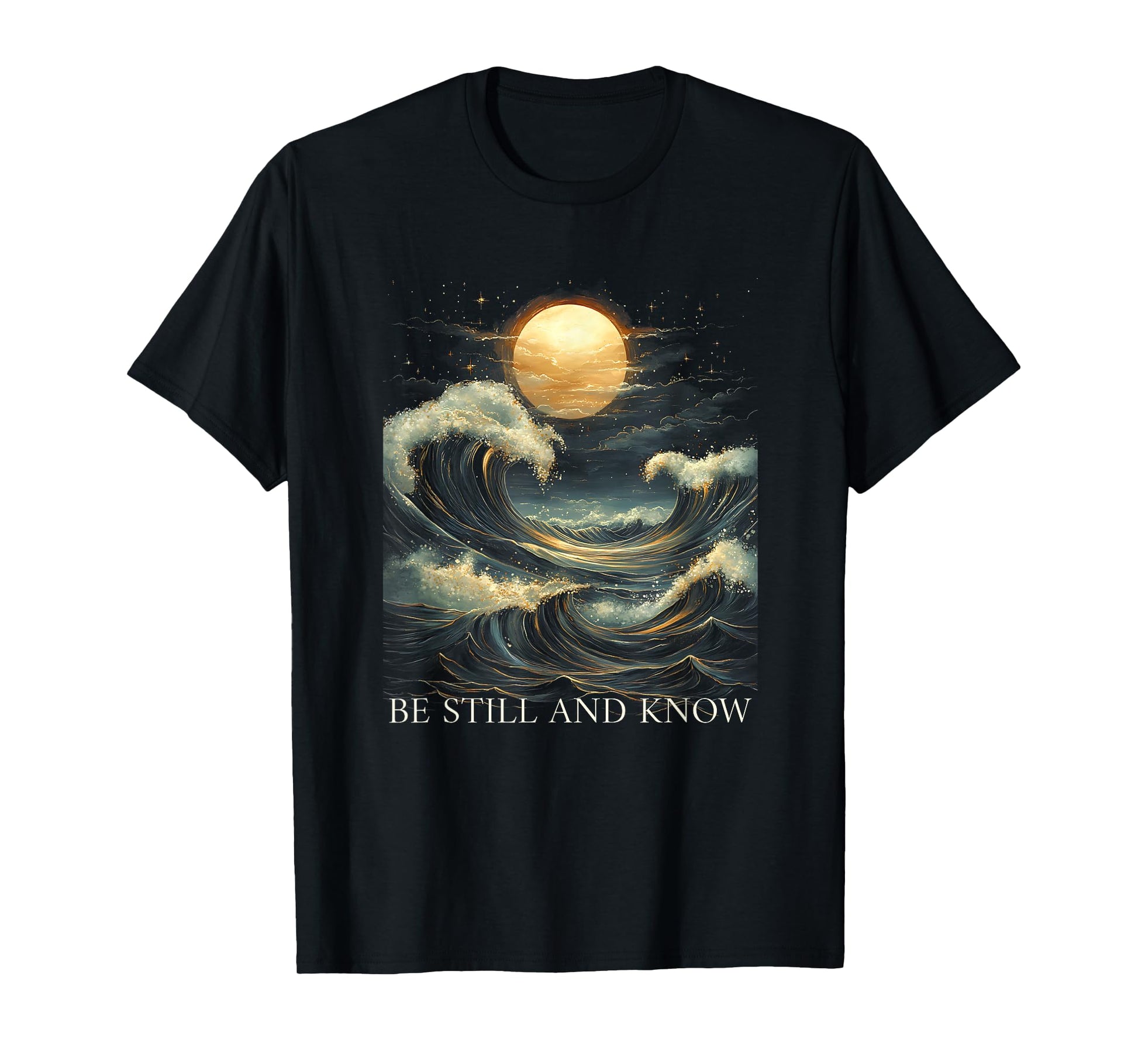 Be Still and Know Bible Faith Christian Blue Wave Full Moon T-Shirt