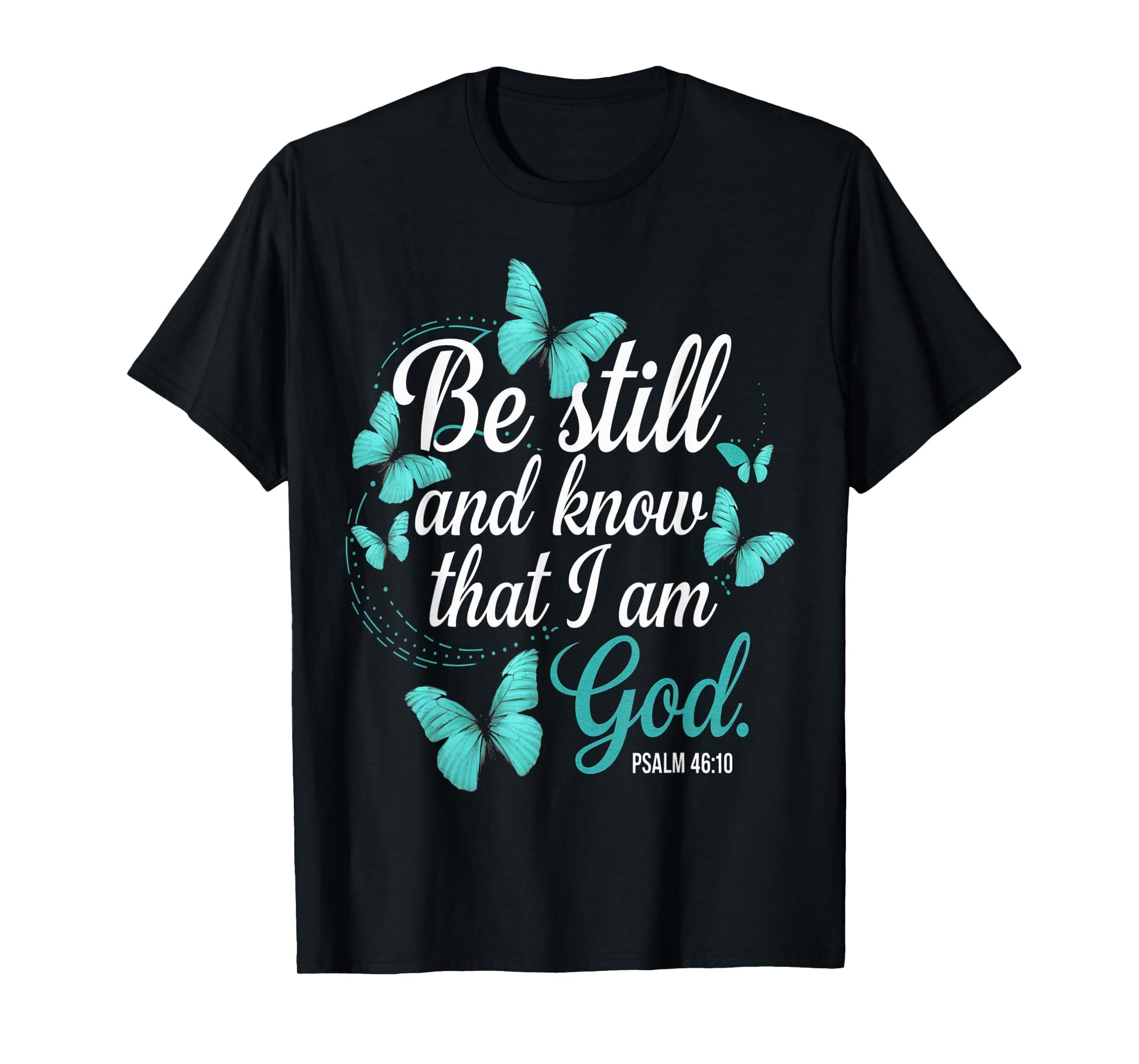 Be Still & Know God Verse Turquoise Butterfly Faith Apparel T-Shirt