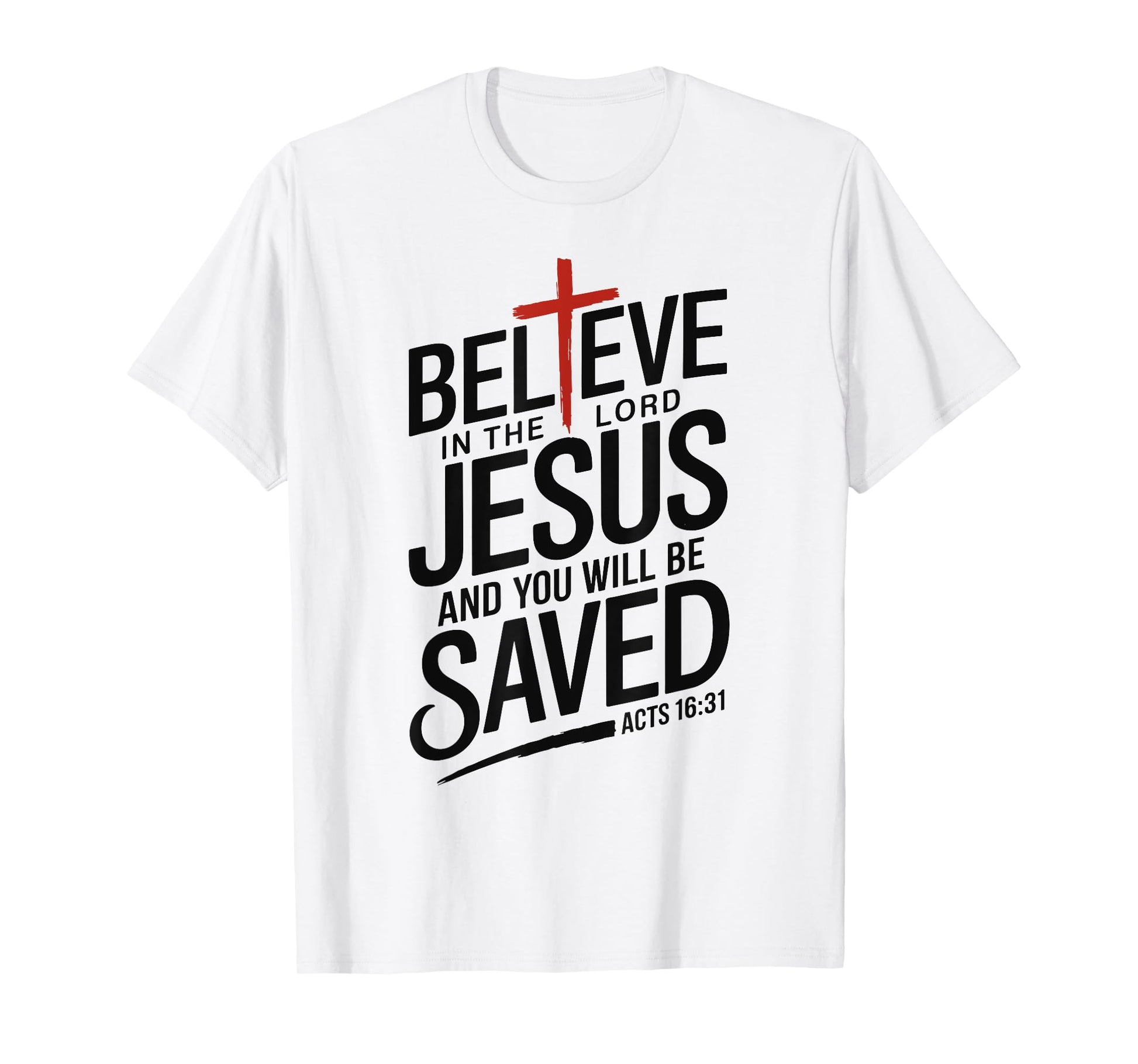 Believe In The Lord Jesus You will be Saved Cross Christian T-Shirt