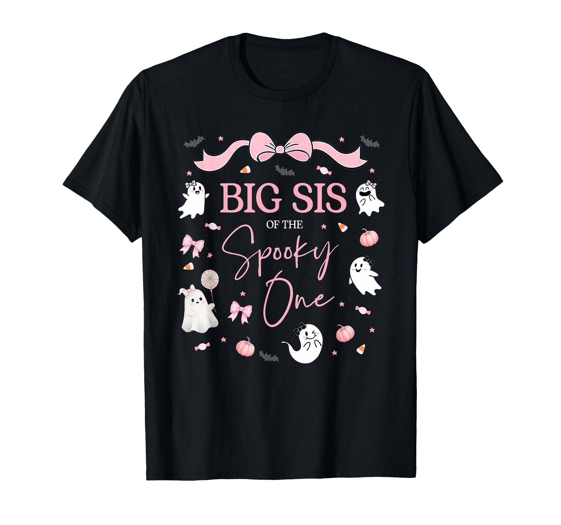 Big Sis of The Spooky One Birthday Girl Pink Bow Halloween T-Shirt