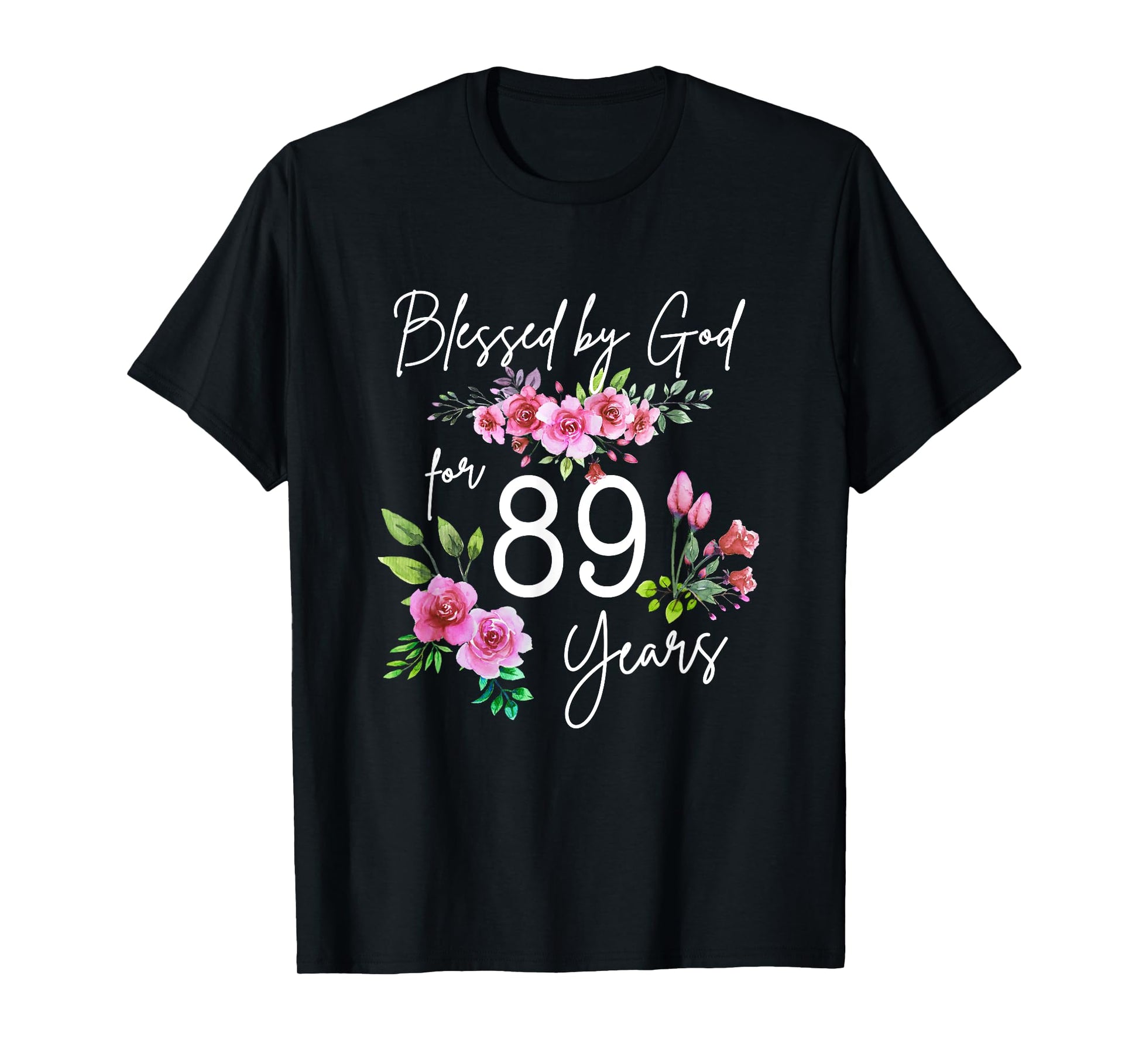 Blessed By God For 89 Years Rose Flower Happy 89th Birthday T-Shirt