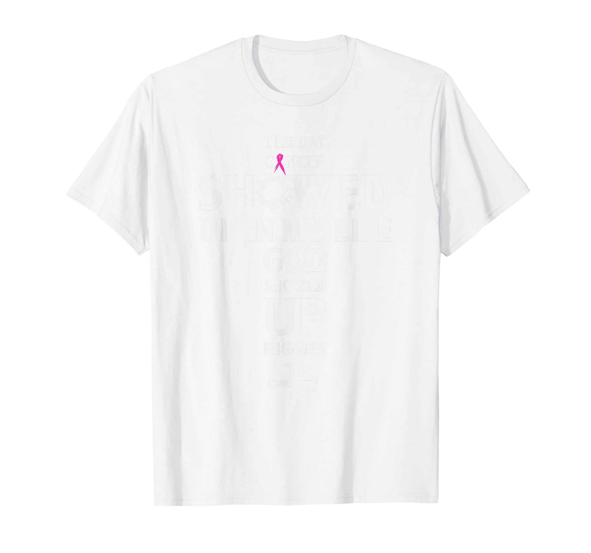 Breast Cancer Awareness God Showed Up Bigger Christian Cross T-Shirt