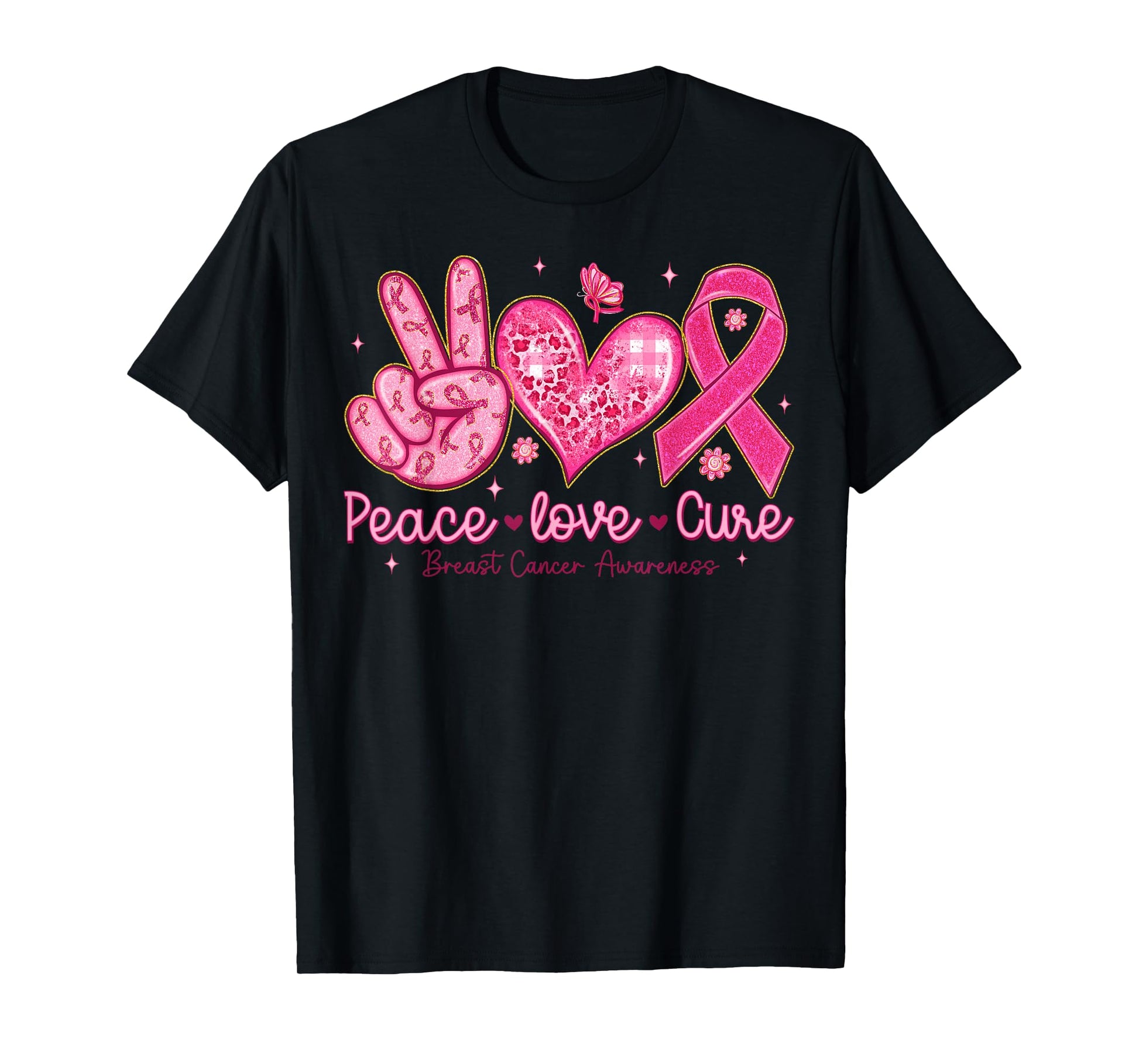 Breast Cancer Awareness Pink Ribbon Peace Love Cure Faith T-Shirt