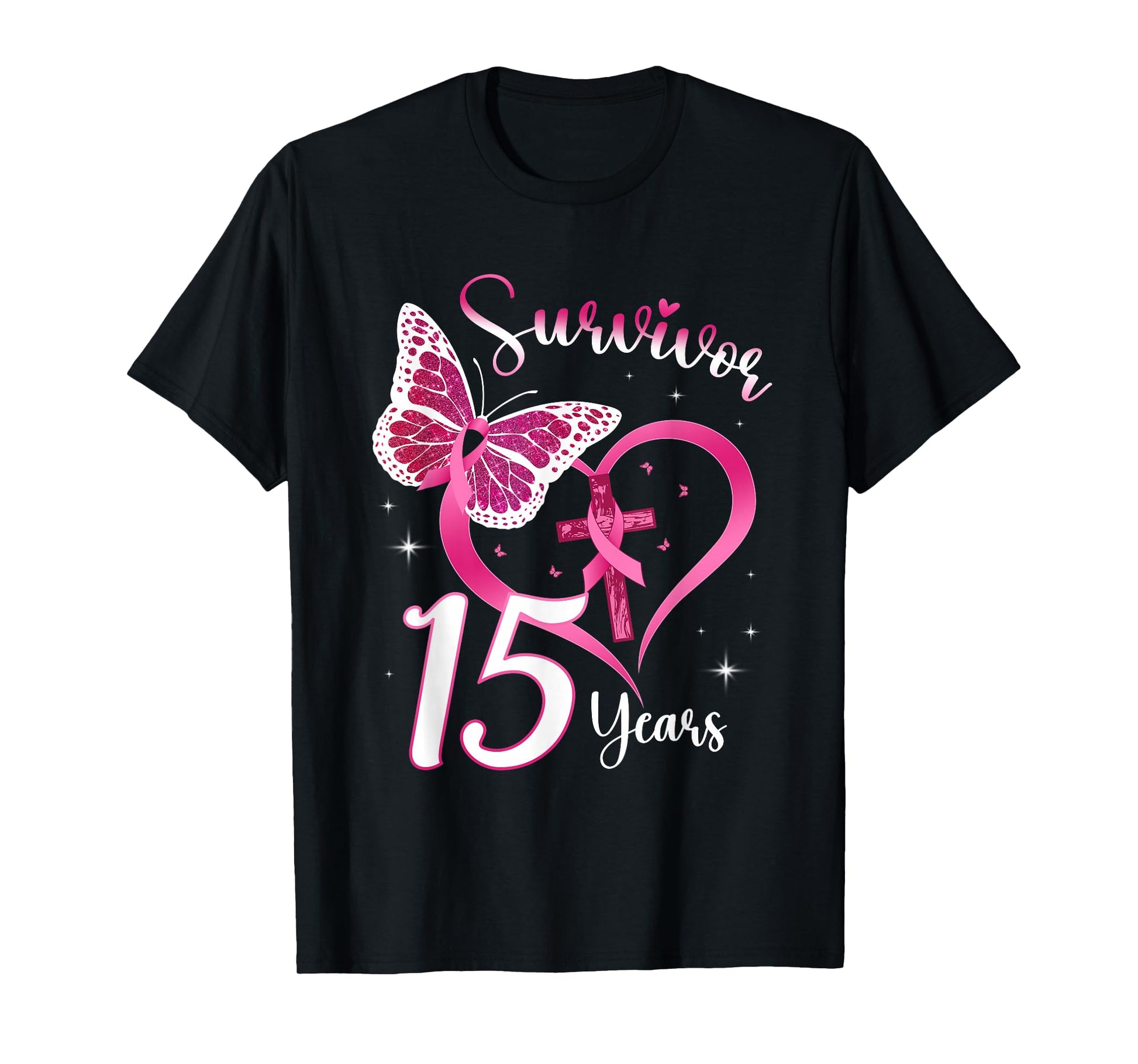 Breast Cancer Survivor Pink Ribbon Butterfly 15 Years Gift T-Shirt