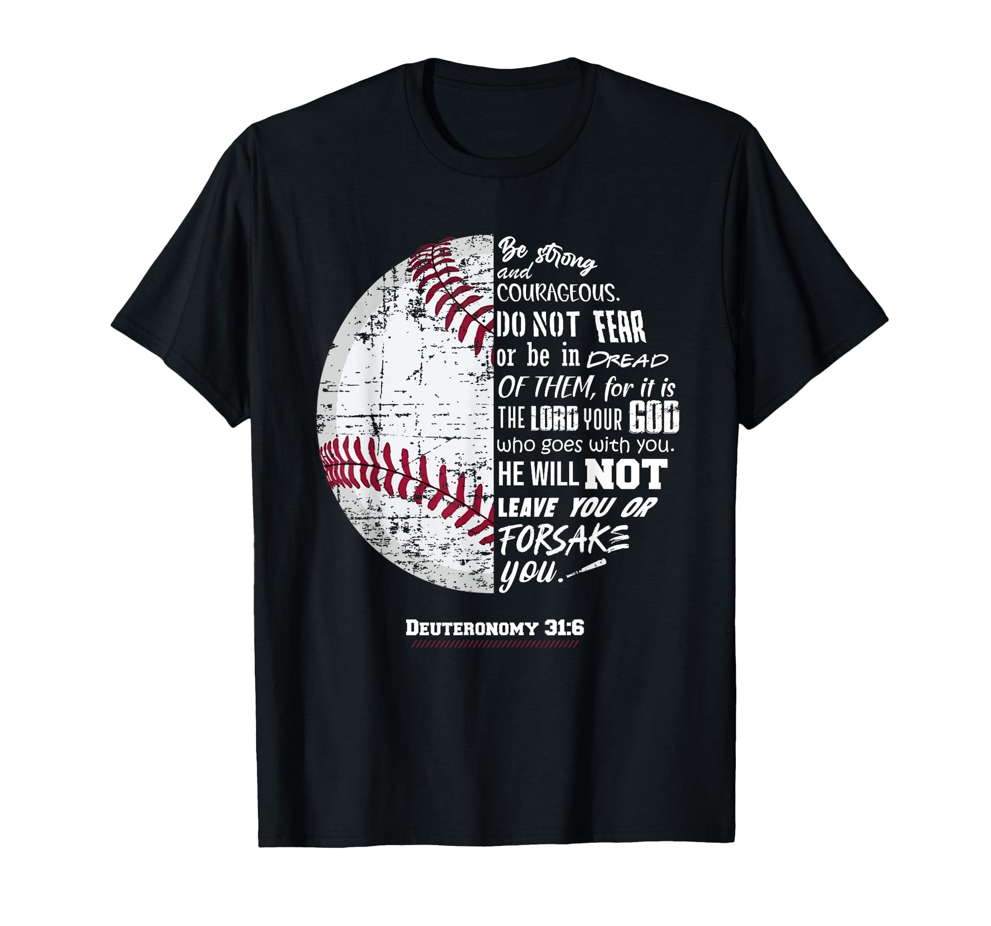 Christian Baseball, Deuteronomy 31:6, Bible Verse, Faith God T-Shirt