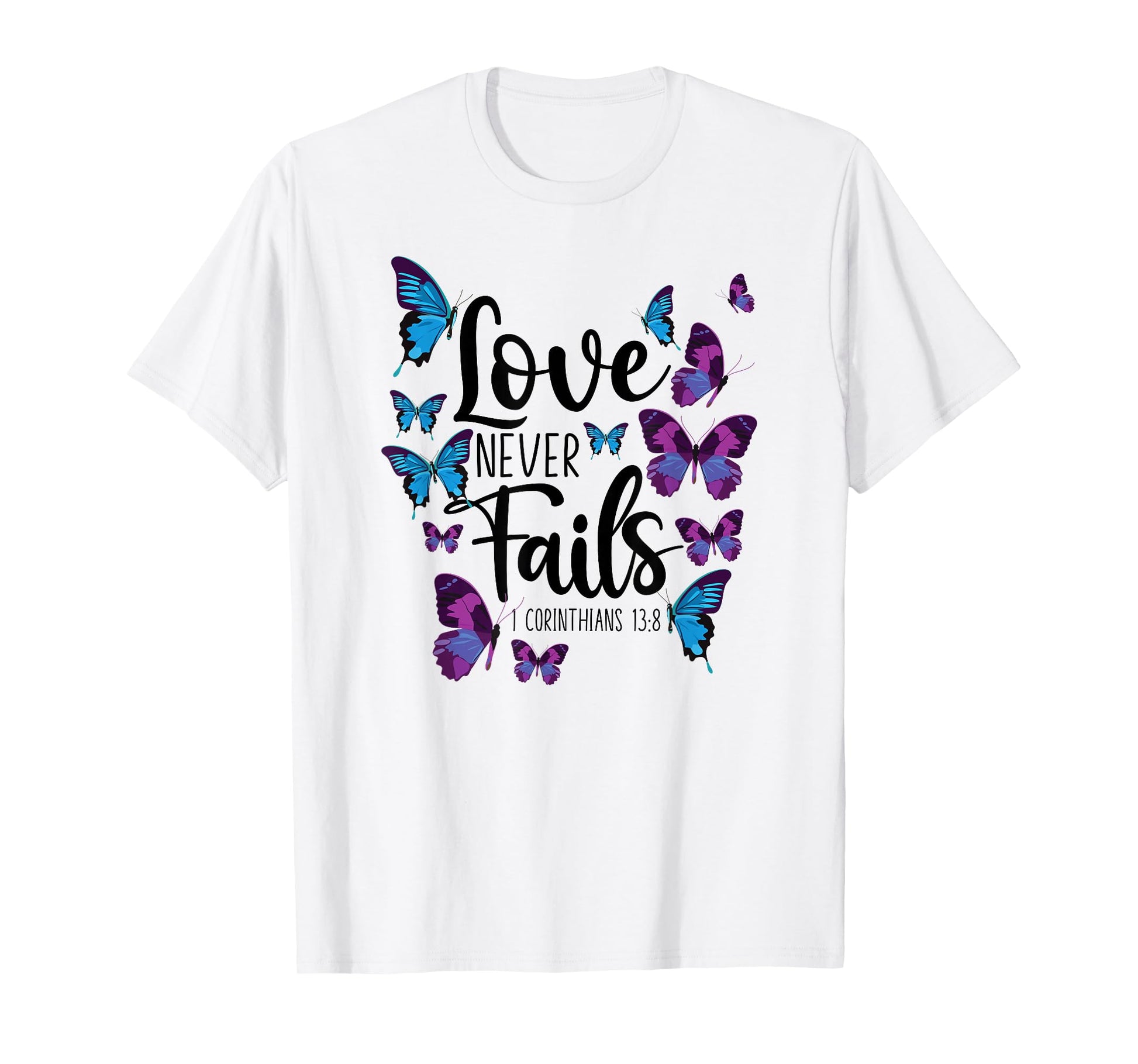 Christian Bible Verse Quote Butterfly 1 Corinthians 13:8 T-Shirt