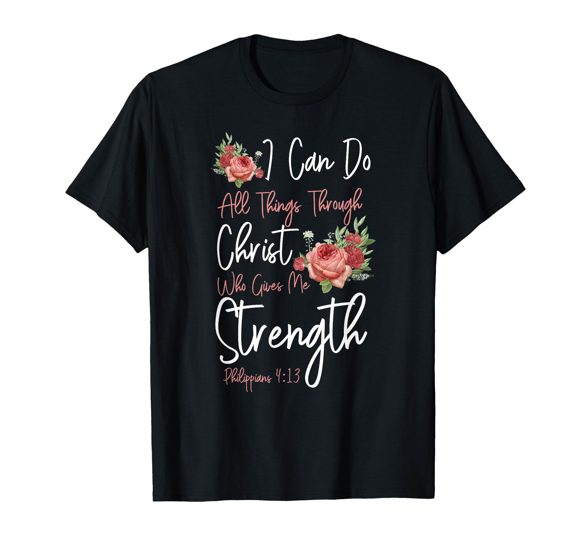 Christian Bible Verse Quote Rose Flower Philippians 4:13 T-Shirt