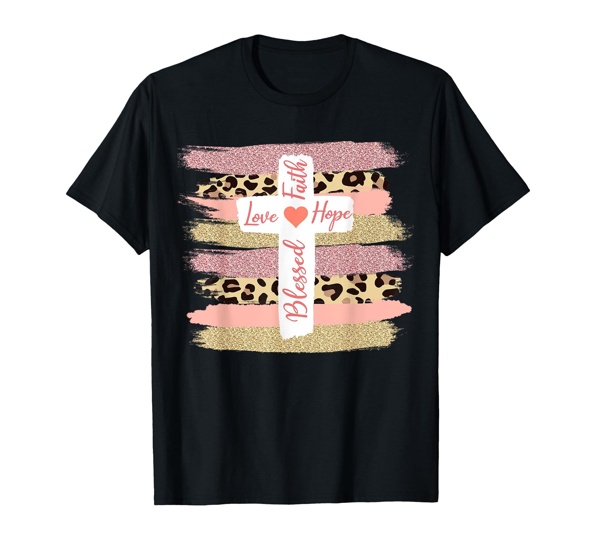 Christian Faith Love Hope Blessed - Cross Cheetah Ombre T-Shirt