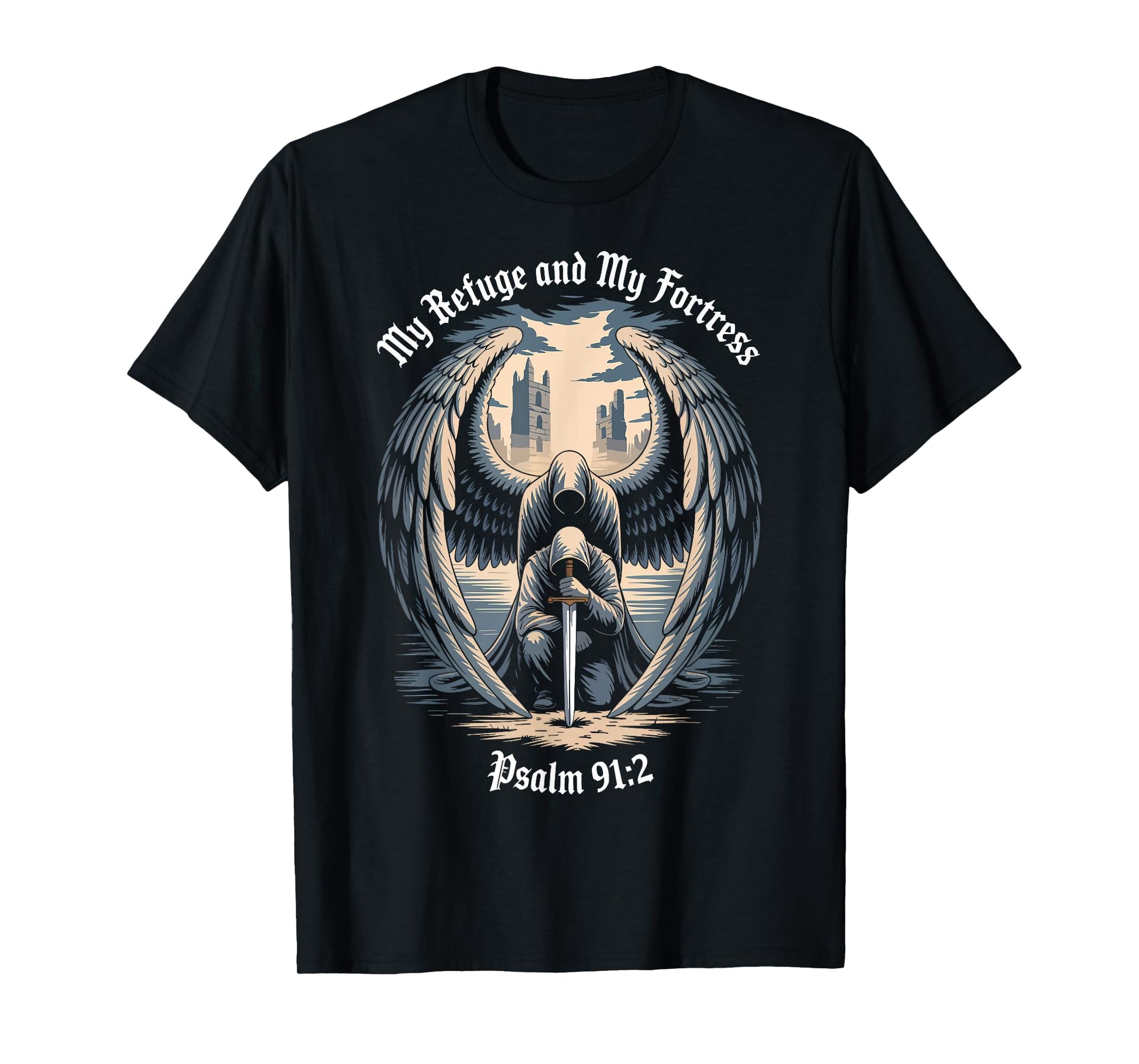 Christian Gothic Guardian Angel Bible Quote Psalm 91:2 T-Shirt