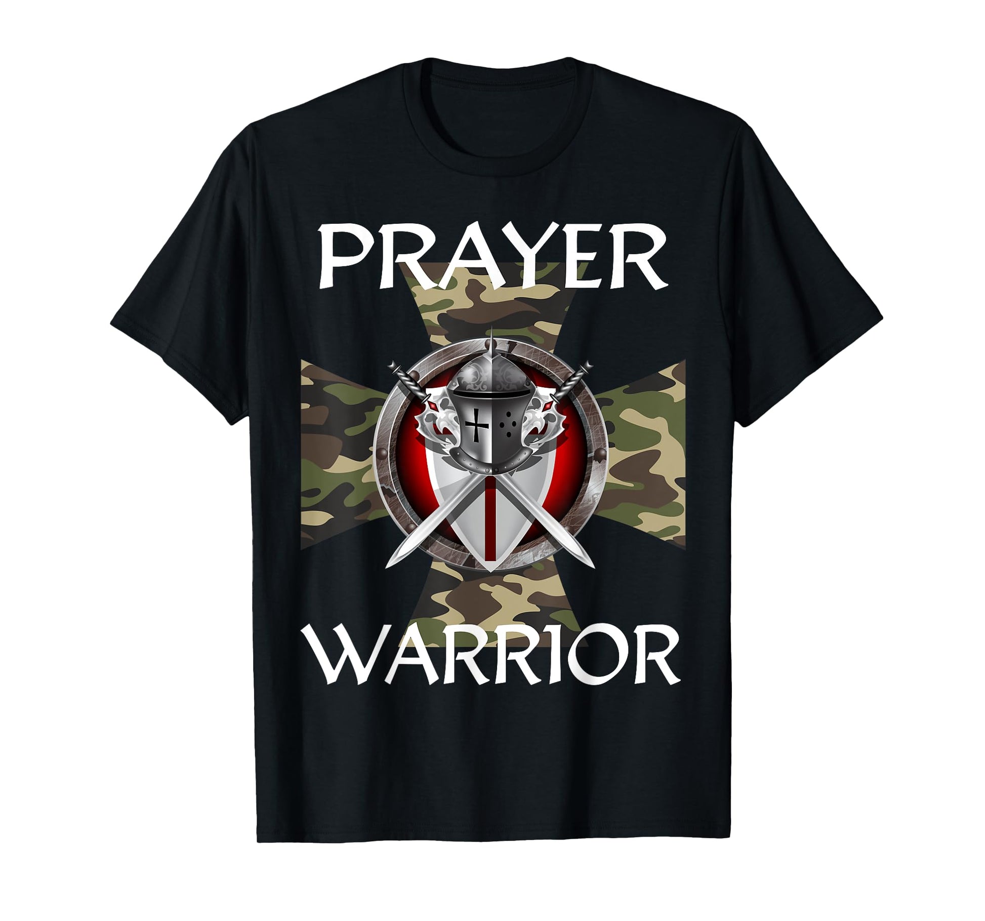 Christian Prayer Warrior Green Camo Cross Religious Messages T-Shirt