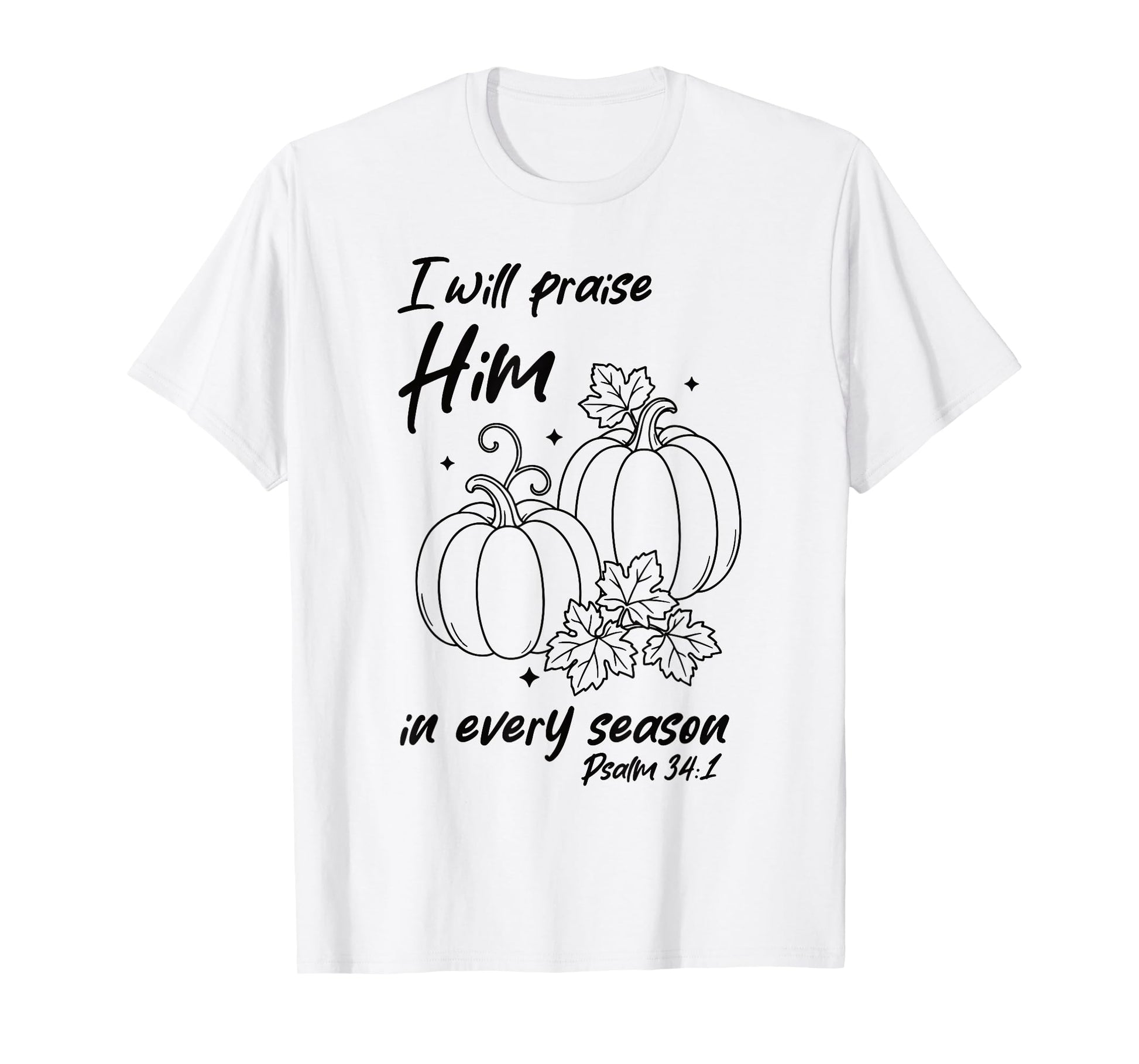 Christian Pumpkin Praise Him in Every Season Psalm 34:1 Tee T-Shirt