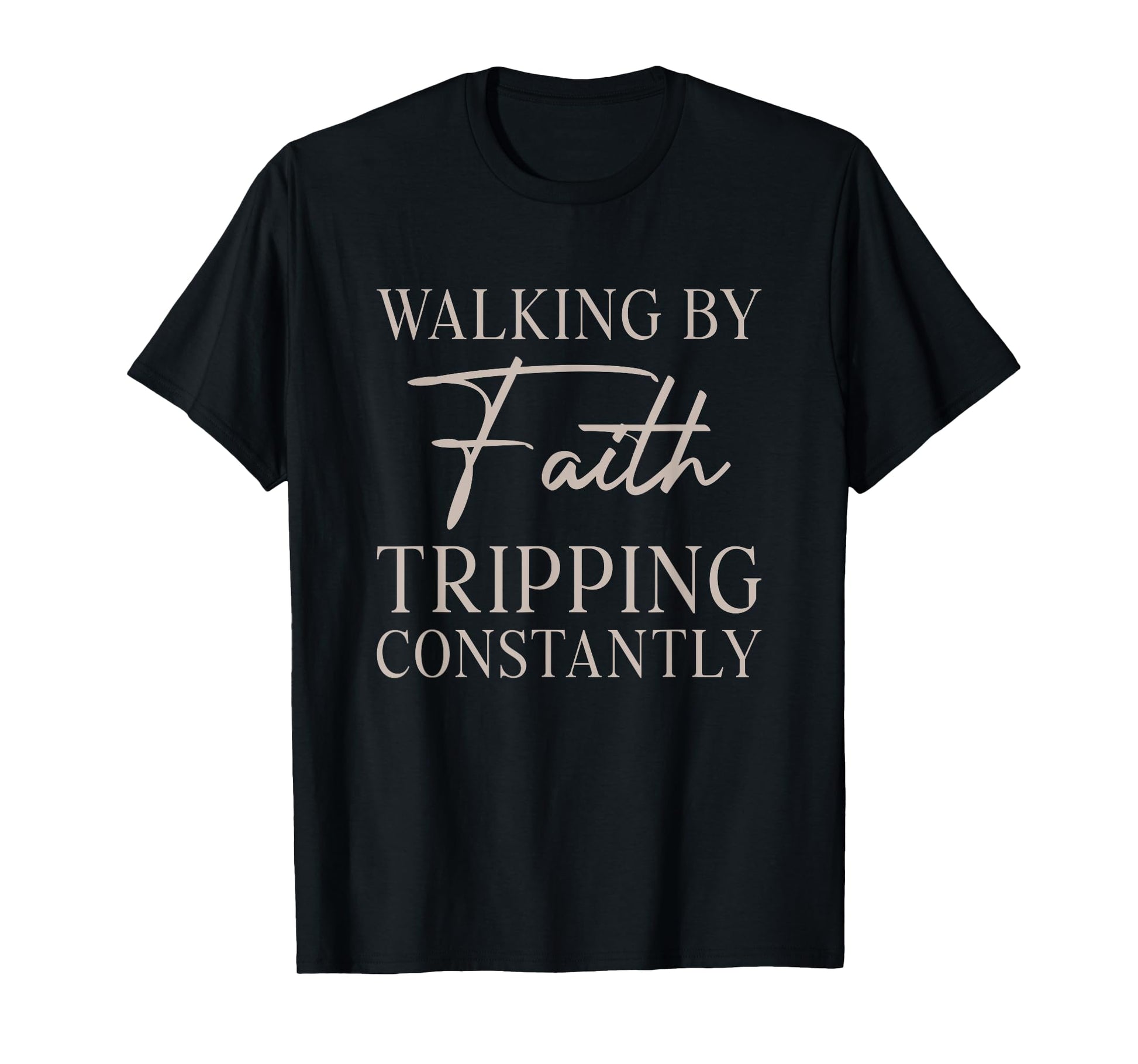 Christian Walking by Faith Tripping Constantly for Men Women T-Shirt