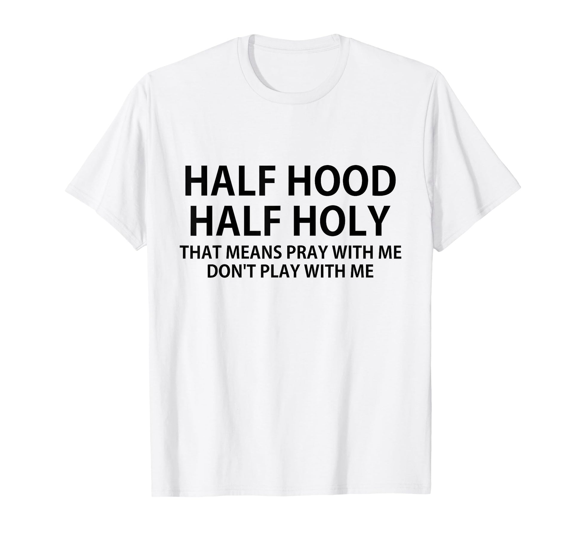 CRSDESIGNS Half Hood Half Holy Pray Don't Play Funny Church Jesus T-Shirt