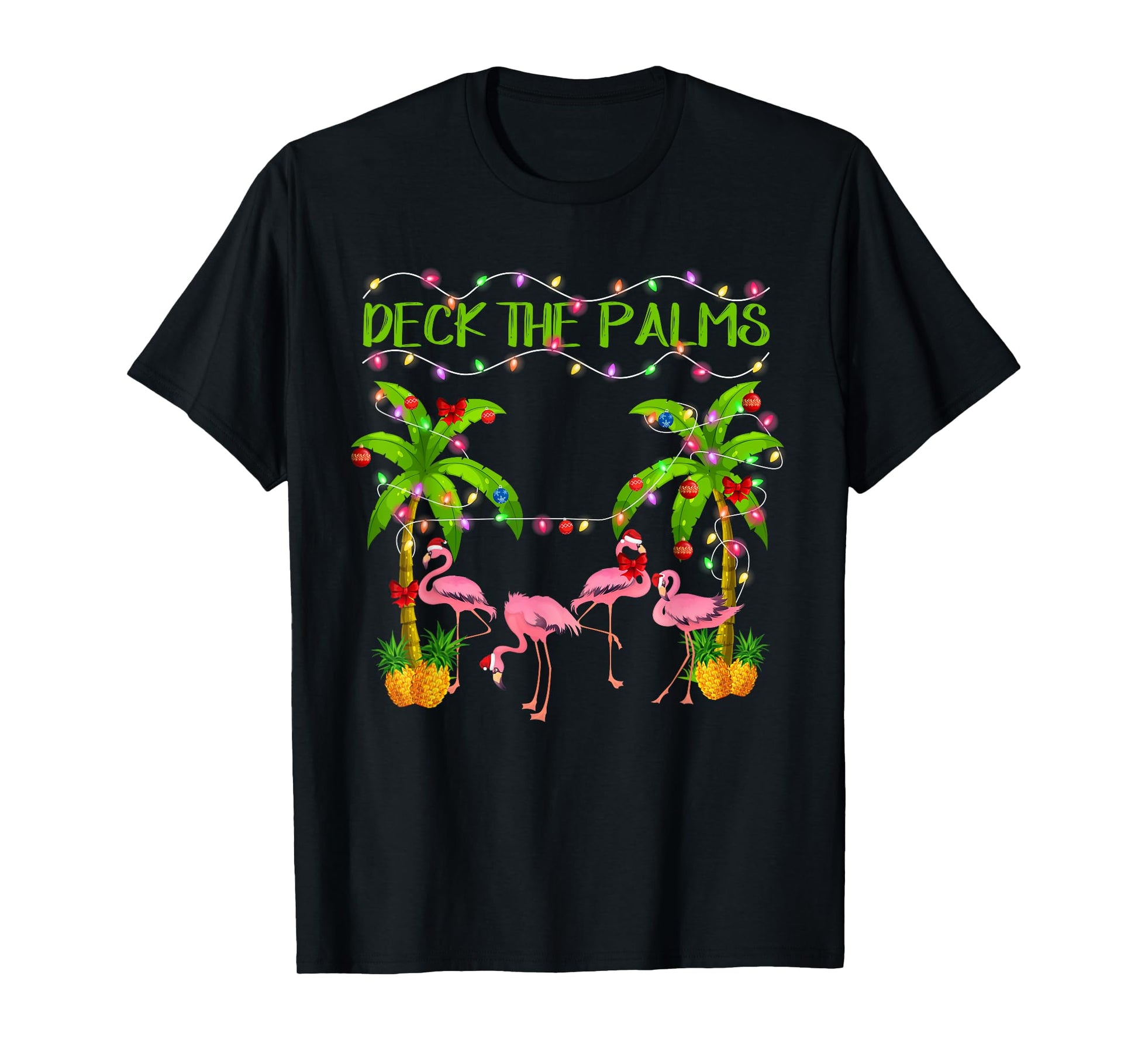 Deck the Palms Flamingo Lover Merry Christmas Pink Xmas T-Shirt