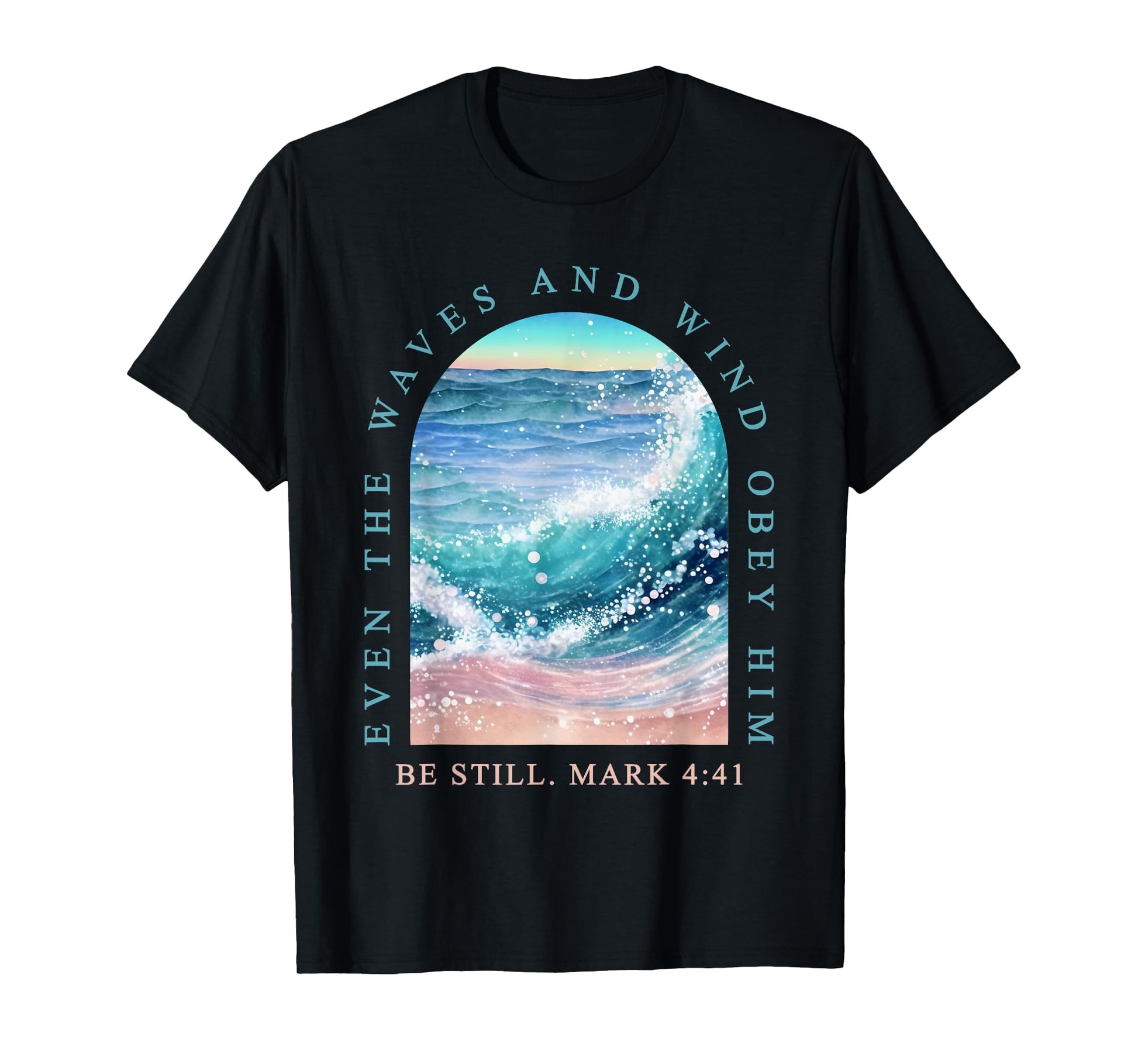 Even The Waves and Wind Obey Him Ocean Bible Verse T-Shirt