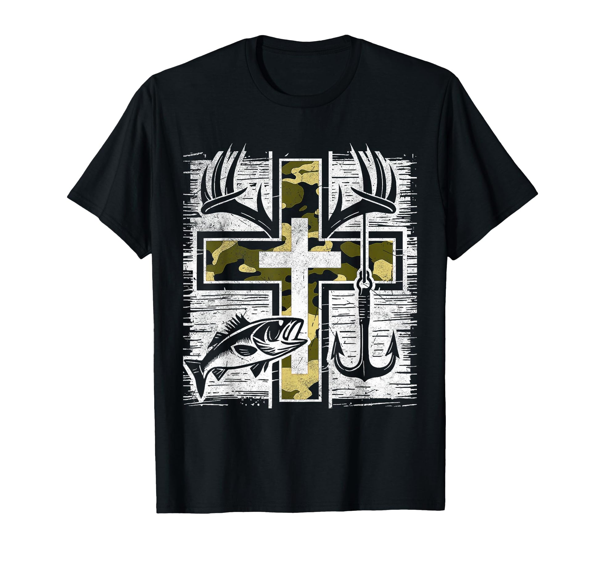 Faith Fishing Hunting Camo Cross Bass Hook Christian Gifts T-Shirt