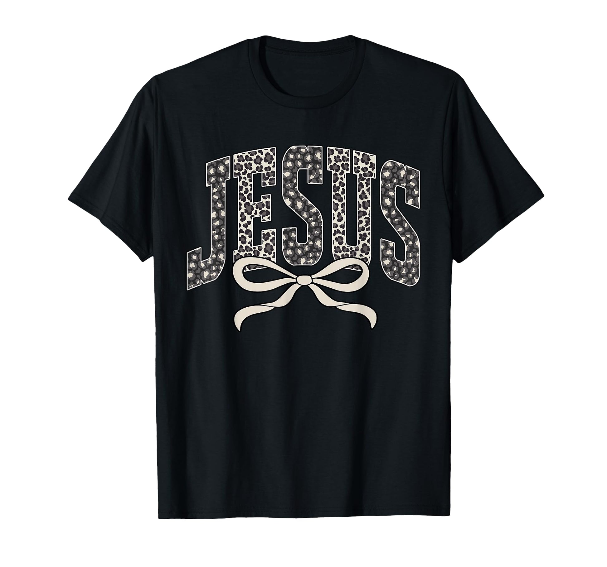 Faith Leopard Jesus Coquette Bow Christian Religious Bible T-Shirt