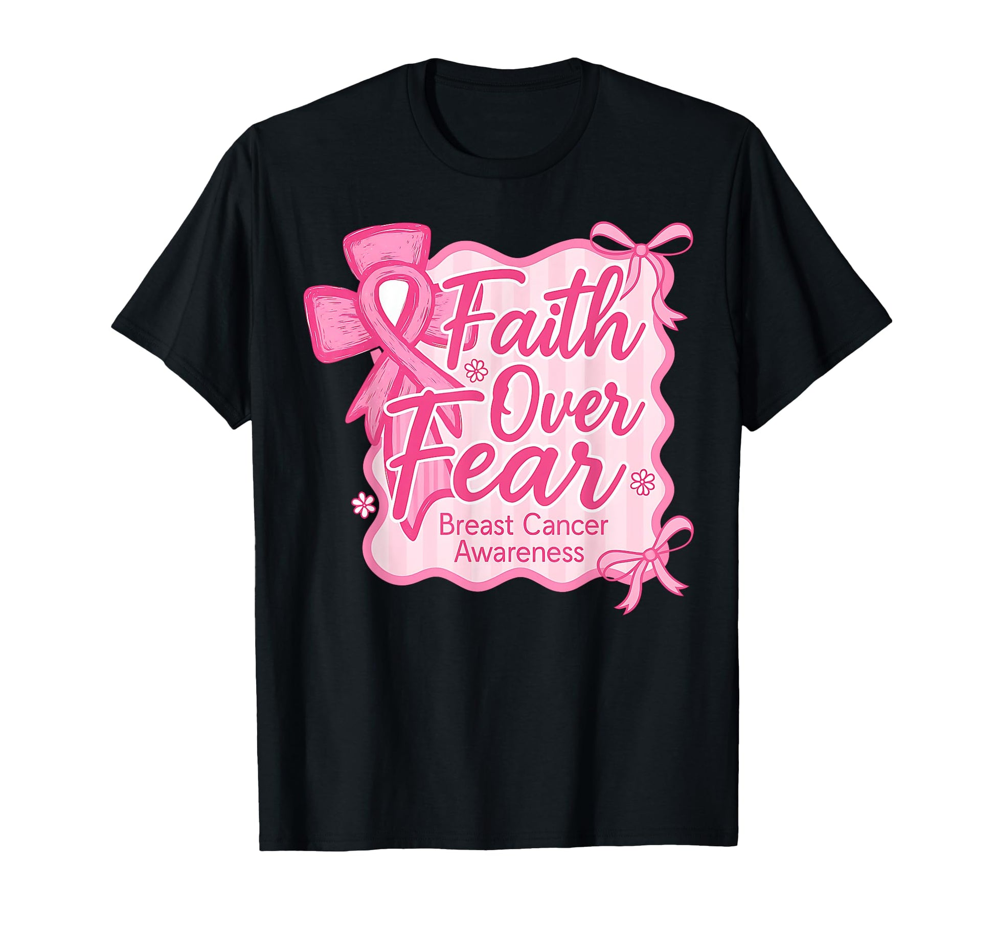 Faith Over Fear Breast Cancer Awareness Christian Pink Bow T-Shirt