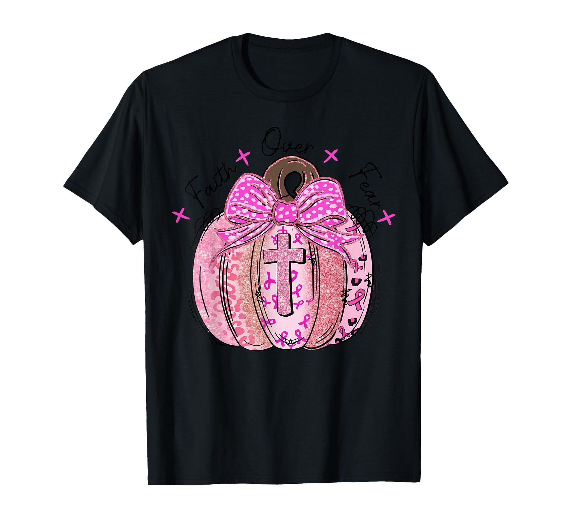 Faith Over Fear Pumpkin BowwCross Breast Cancer Awareness T-Shirt