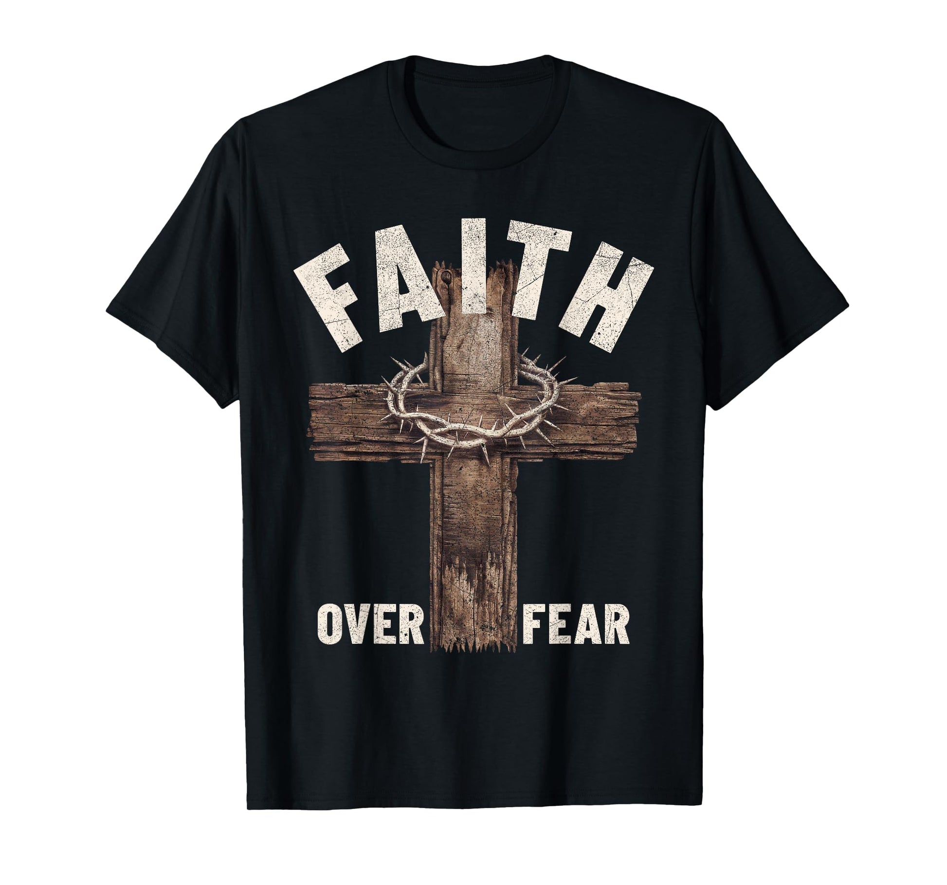 Faith Over Fear Wooden Cross Crown of Thorns Christian T-Shirt