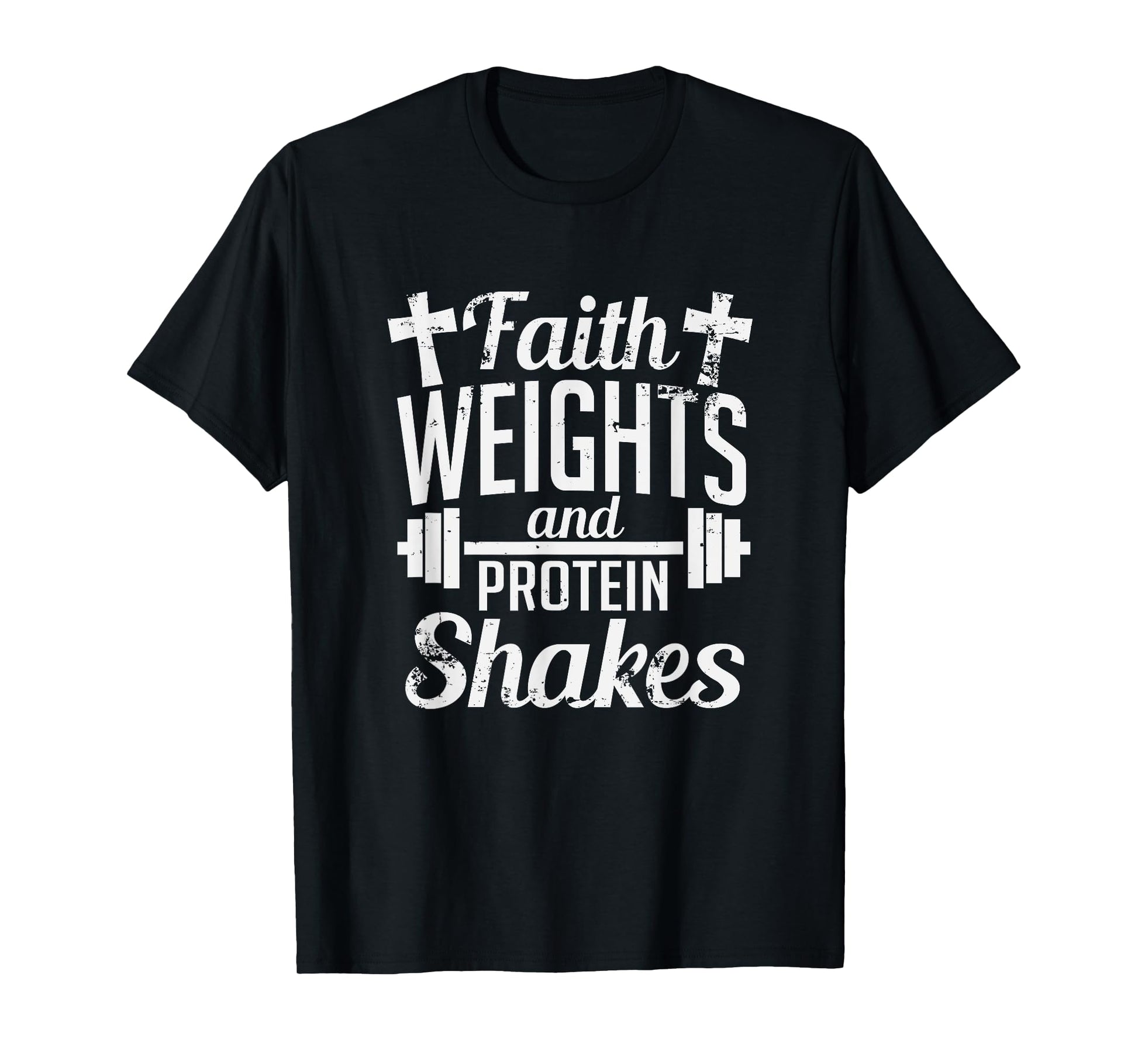 Faith Weights And Protein Shakes Funny Religious Gym T-Shirt T-Shirt