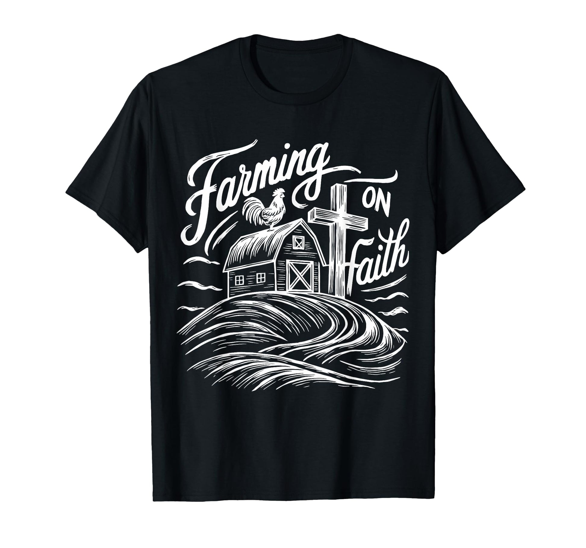 Farming on Faith Barn Cross Christian Farmer Religious T-Shirt