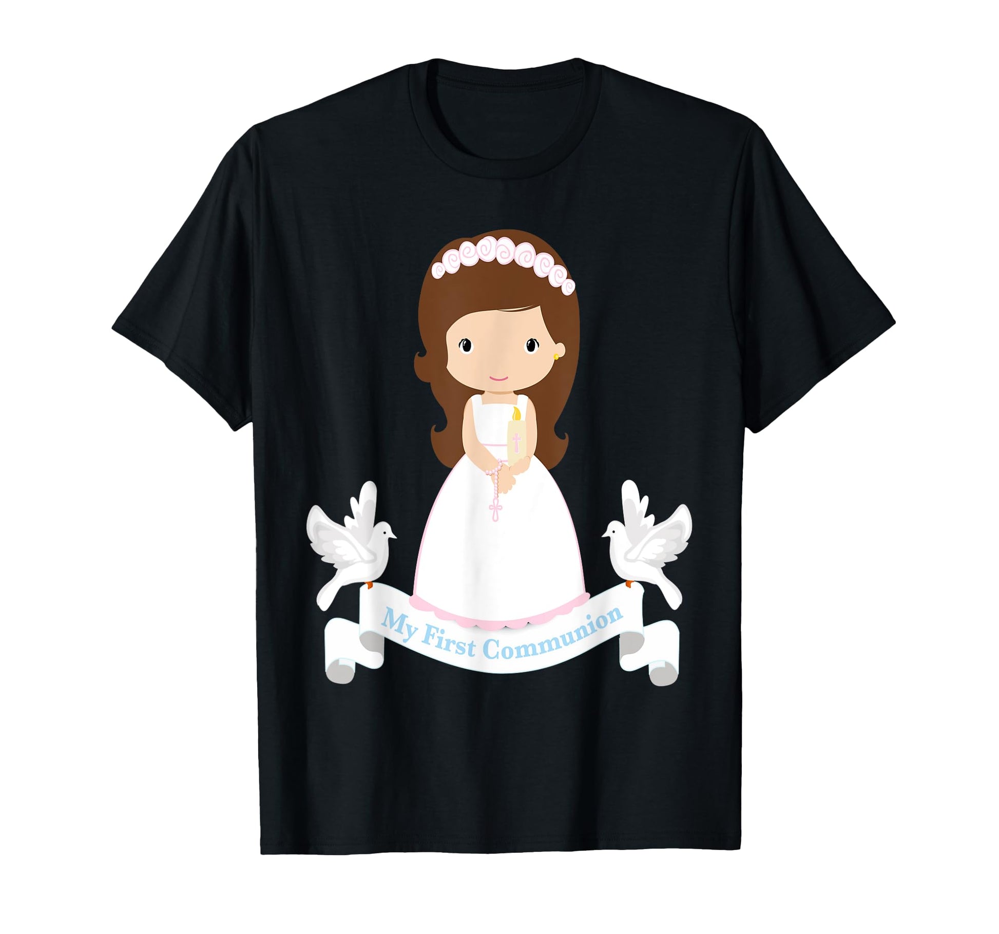 First Communion Shirt Kids Rosary Girls Daughter Brown Hair T-Shirt