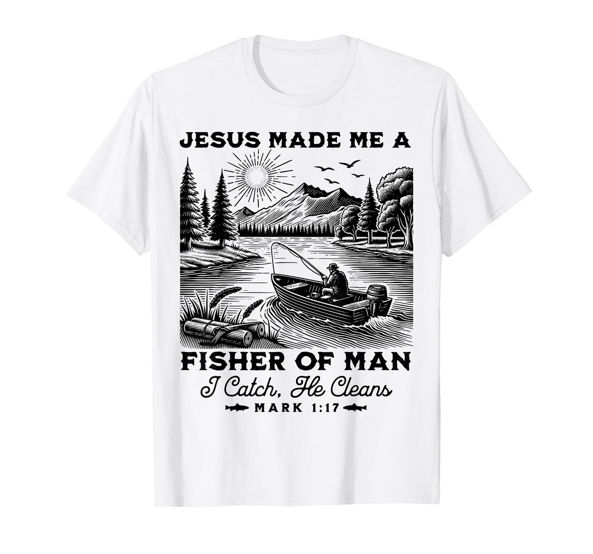 Fisher of Man Mark 1:17 Christian Scripture Jesus Fishing T-Shirt