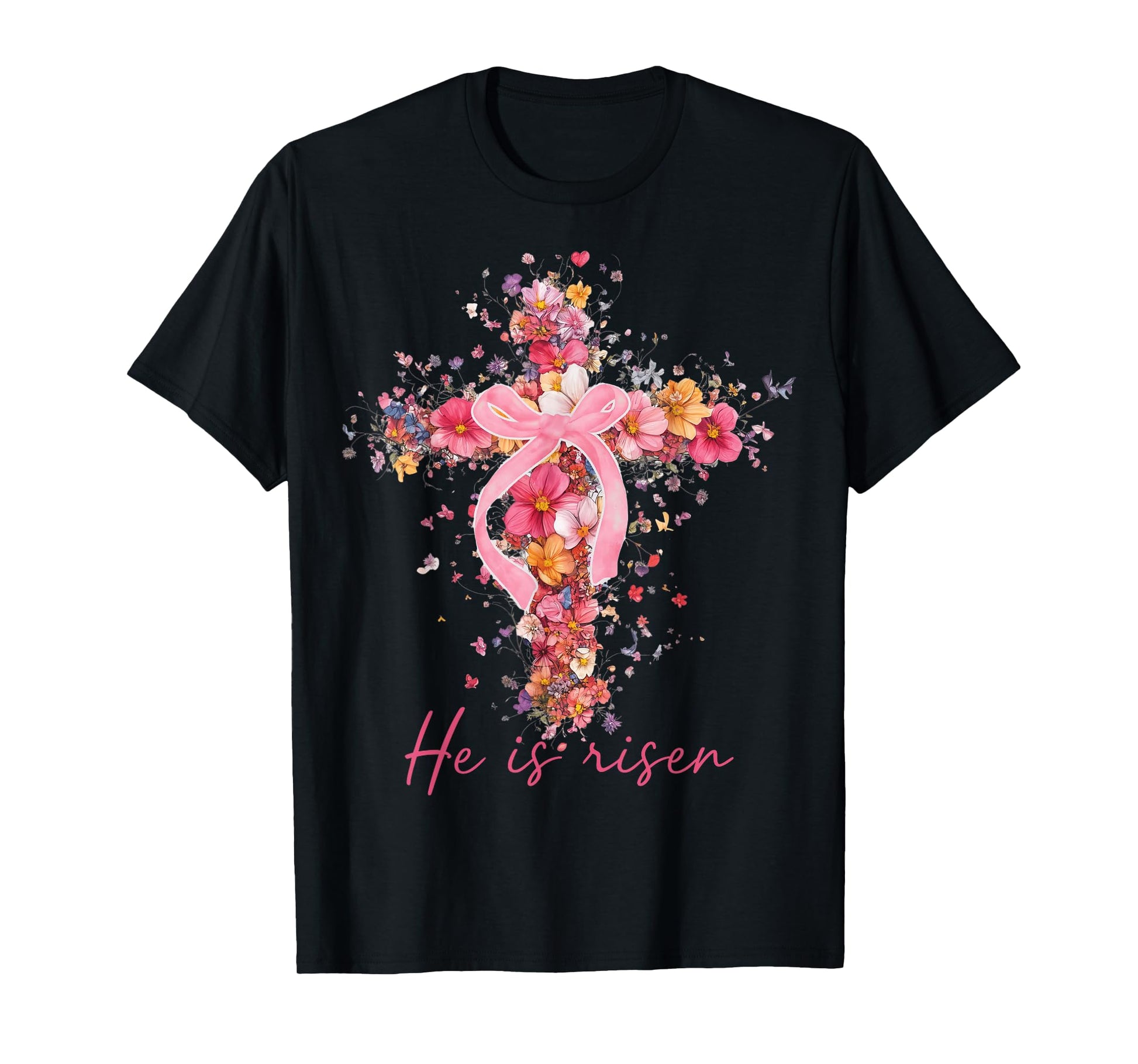 Floral Easter He Is Risen Christian Bible Pink Easter Bow T-Shirt