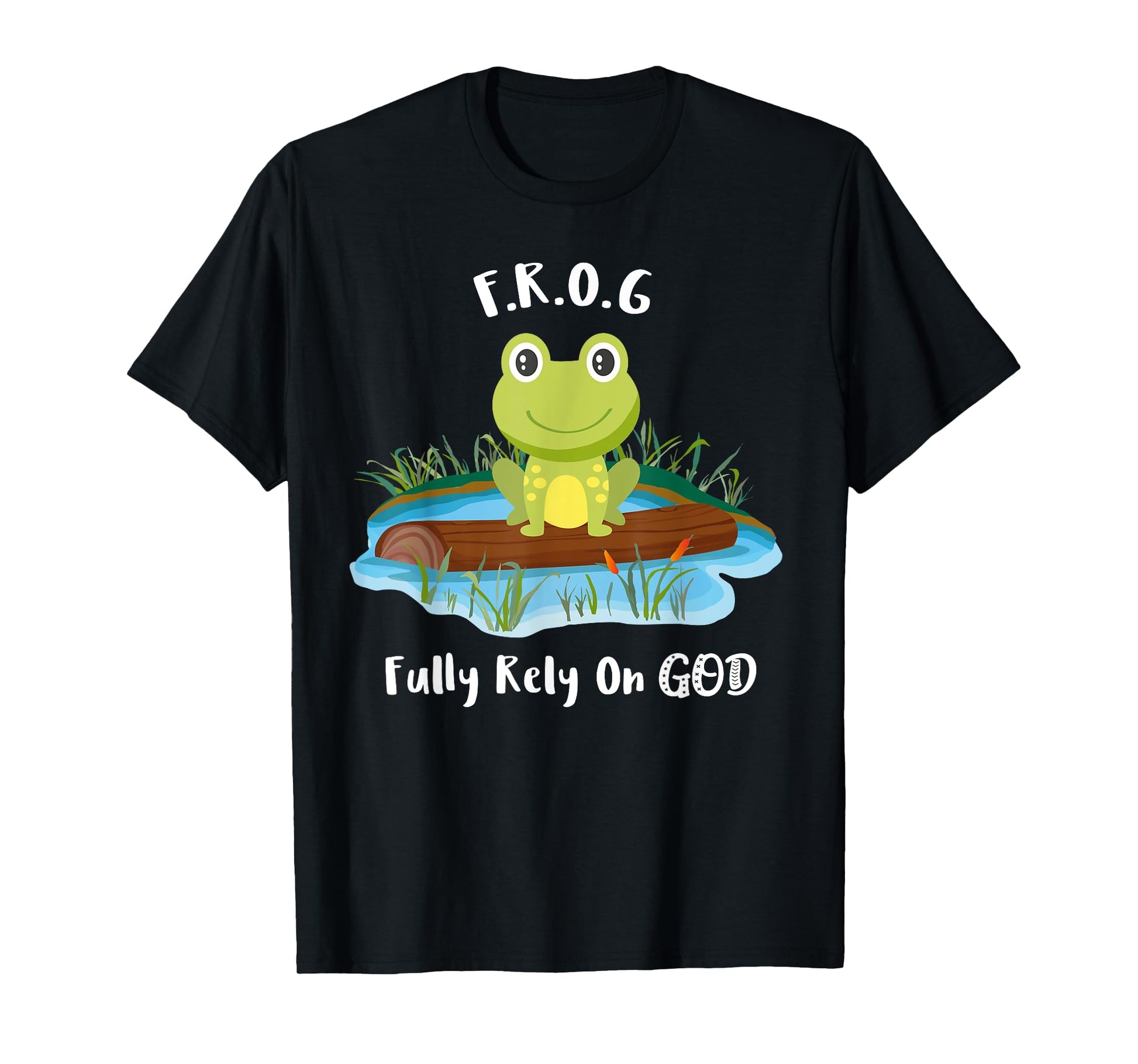 Fully Rely On God acronym F.R.O.G Cute Frog Pond Log T-Shirt T-Shirt