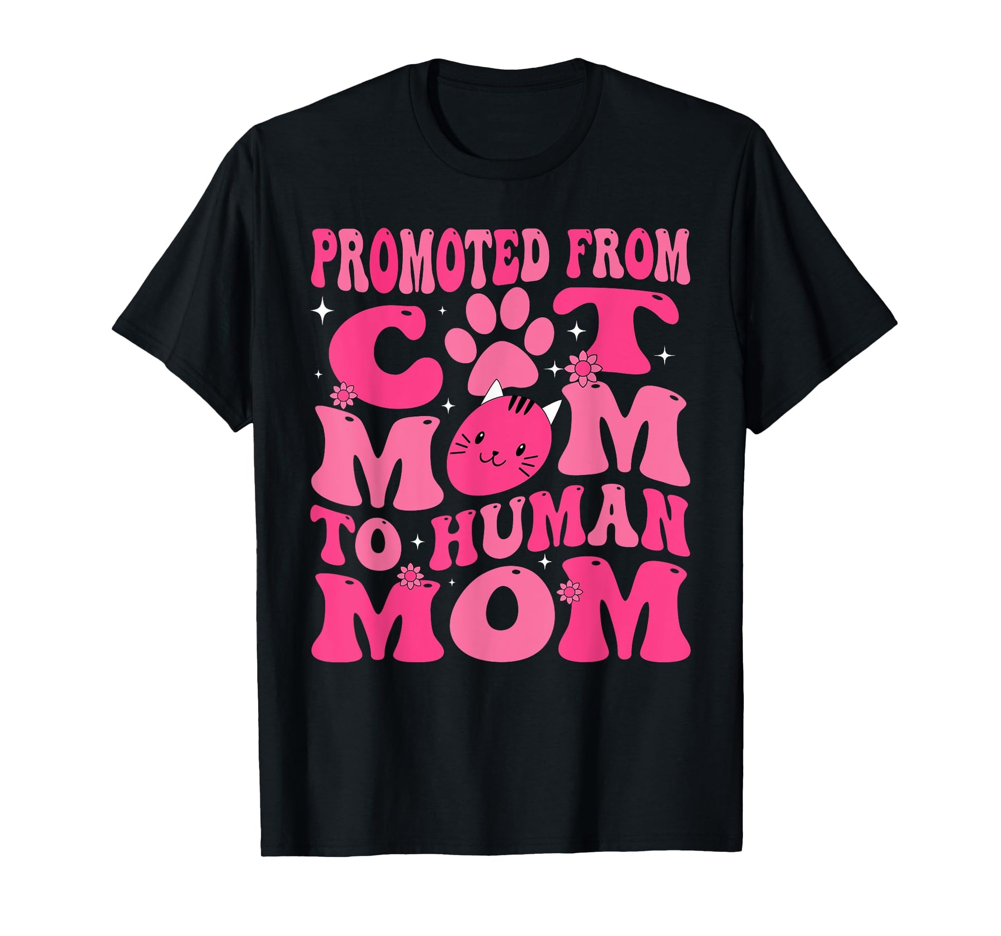 Funny Promoted New Born Promoted From Cat Mom To Human Mom Groovy T-Shirt