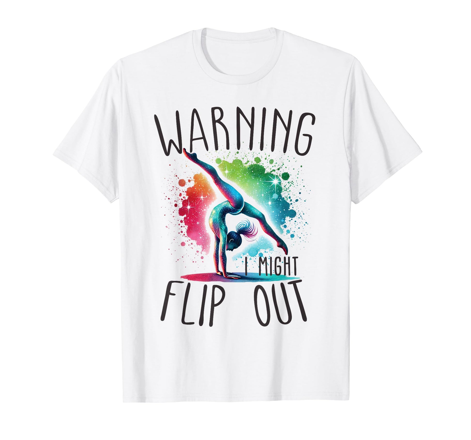 Funny Warning i might flip out rainbow splash gymnast girl T-Shirt