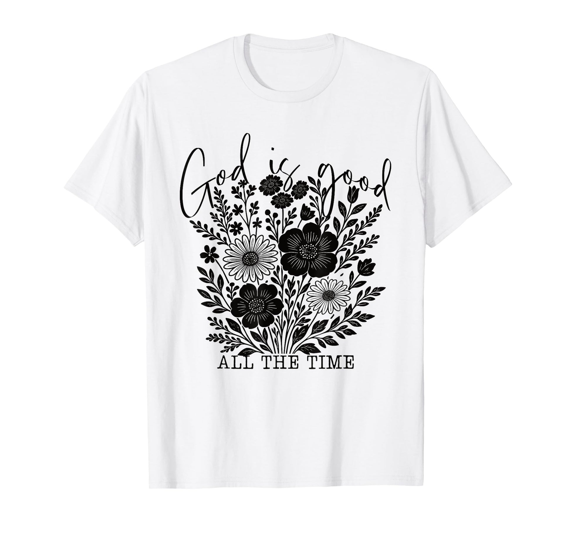 God is Good All The Time Christian Floral Faith Quote Women T-Shirt