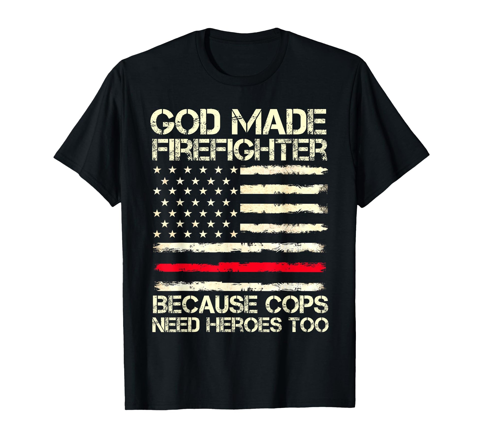 God Made Firefighters Cops USA Flag Funny Fireman Gift Mens T-Shirt