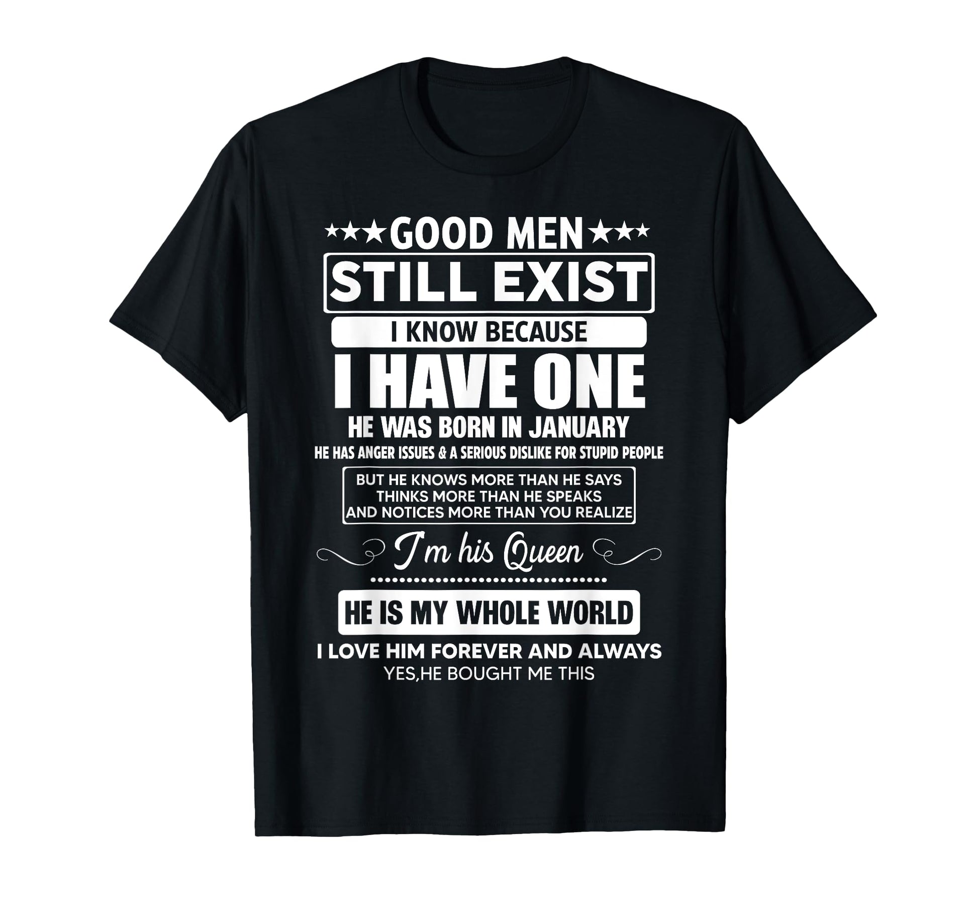 Good Men Still Exist He Was Born In January Funny Birthday T-Shirt