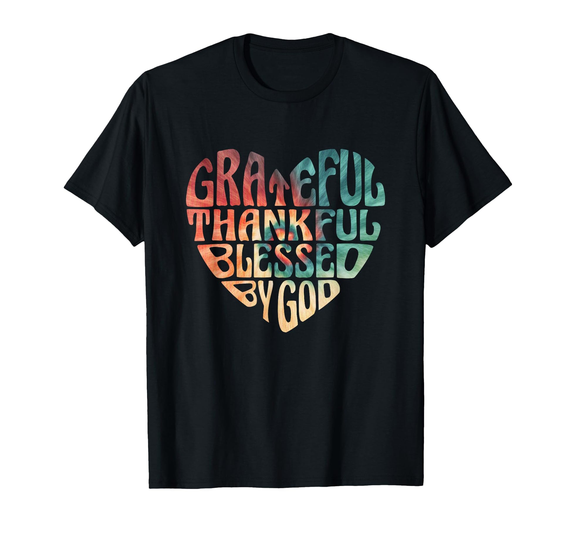 Grateful Thankful Blessed Retro Tie Dye Heart Christian T-Shirt