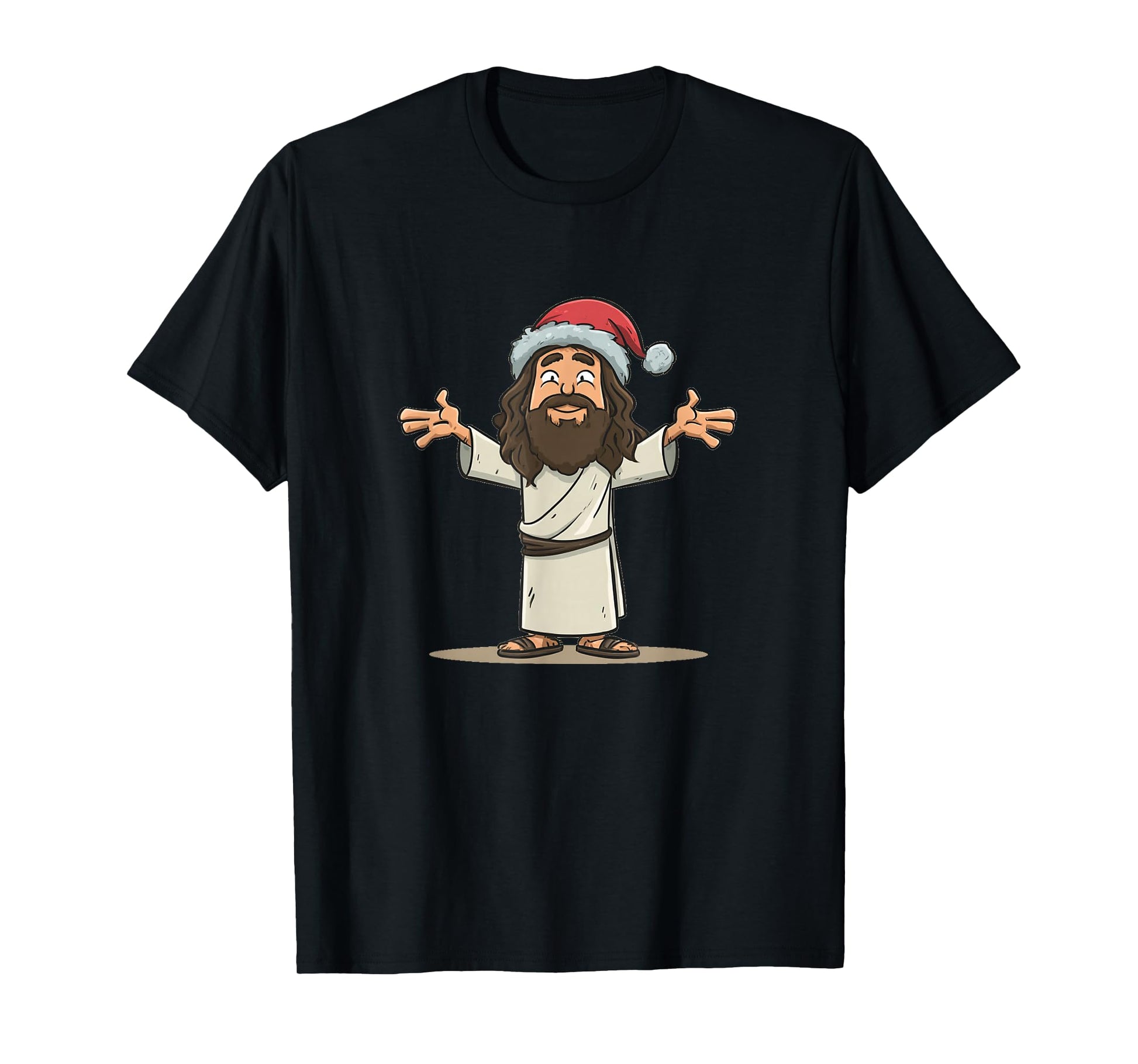 Great Cartoon Jesus with Festive Christmas Hat Costume T-Shirt