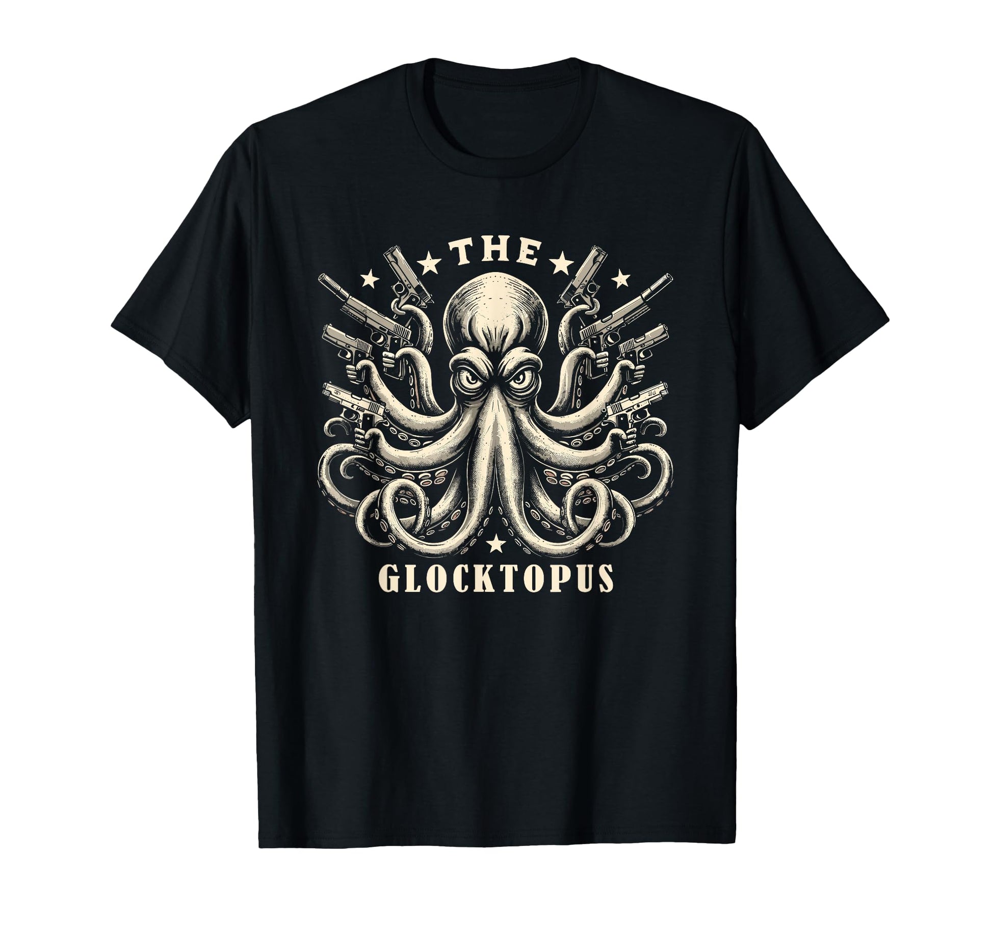 Gun Lover Vintage Squid Octopus Meme Funny Graphic Art T-Shirt