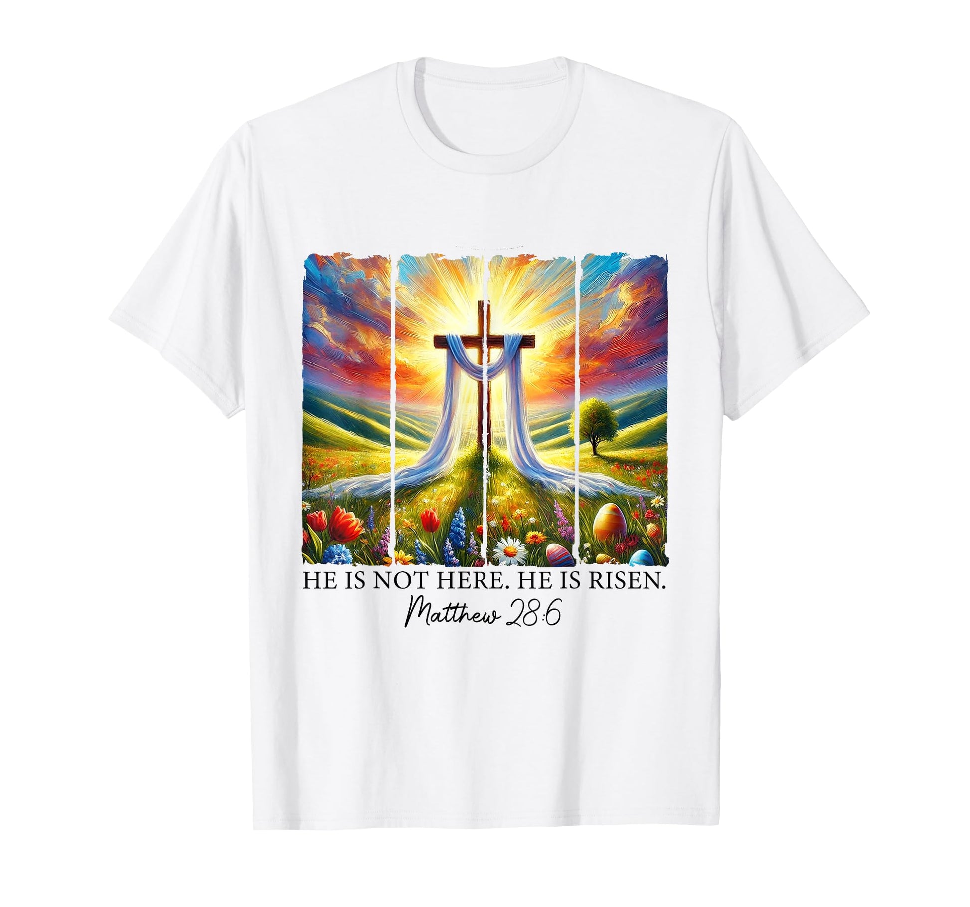He Is Risen Cross Faith Resurrection Jesus Easter Christian T-Shirt