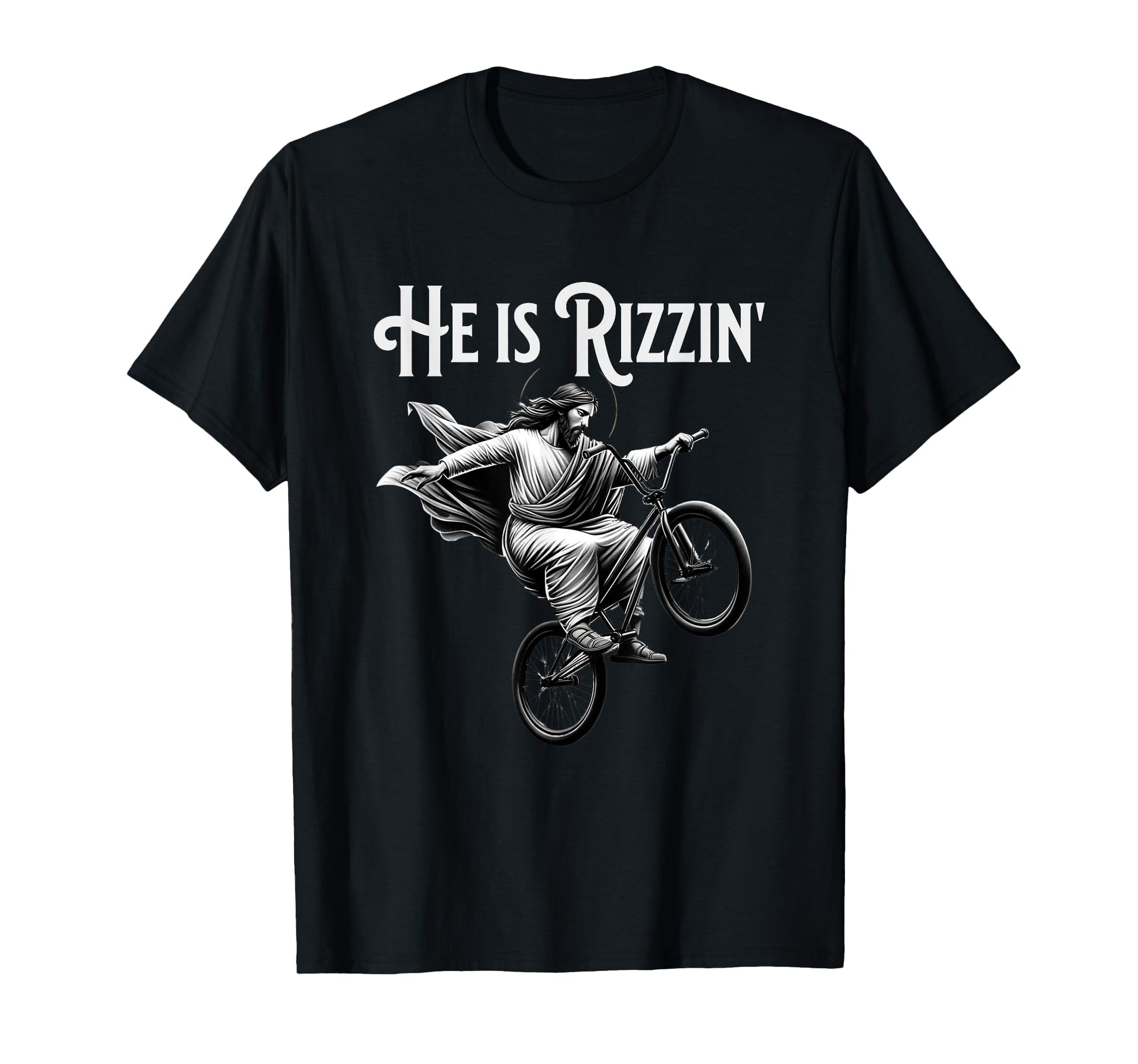 He is Rizzin Jesus Riding BMX Bike Funny Bicycle Rizz T-Shirt