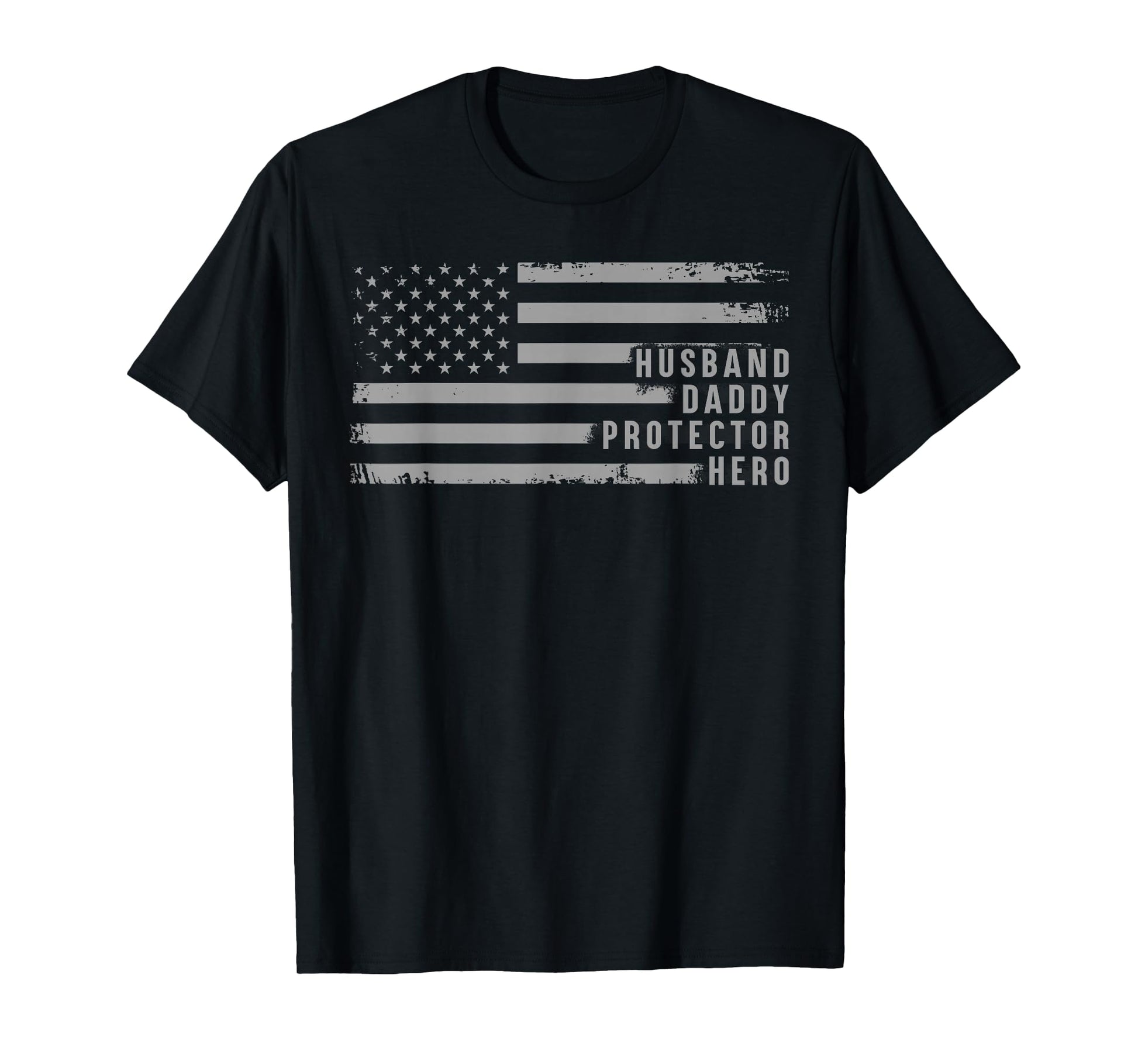 Husband Daddy Protector Hero Fathers Day American Flag Mens T-Shirt
