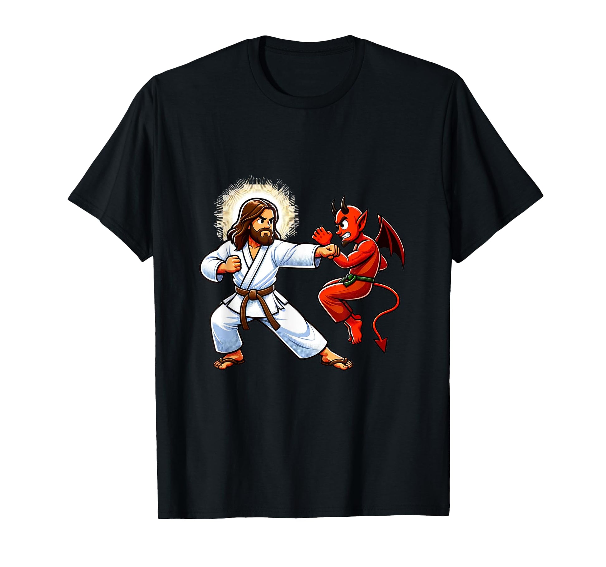 Jesus Defeating the Devil Funny Karate T-Shirt