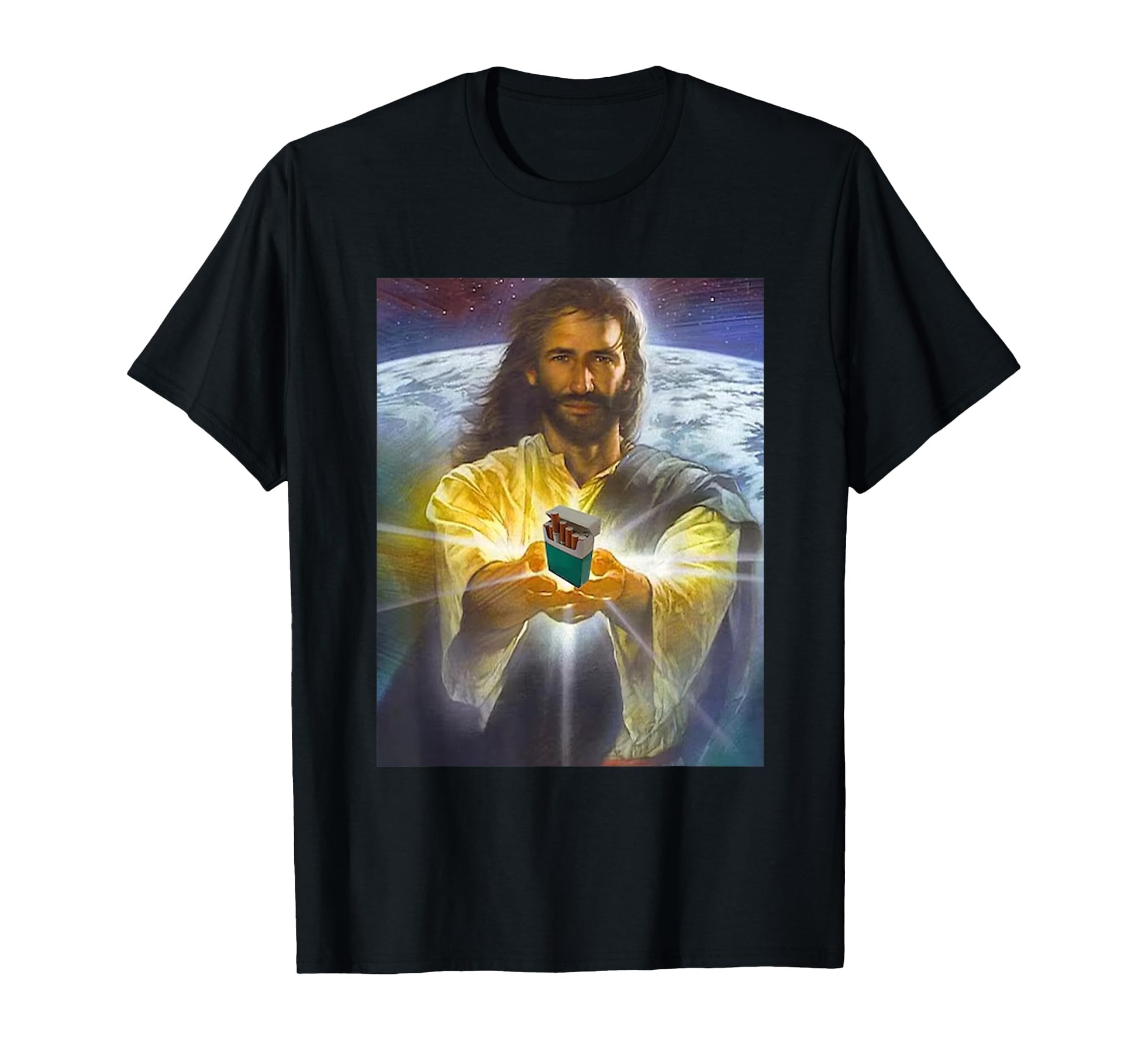 Jesus Holding Cigarettes Funny Jesus Unisex-Adults Black Short Sleeve T-Shirt Small